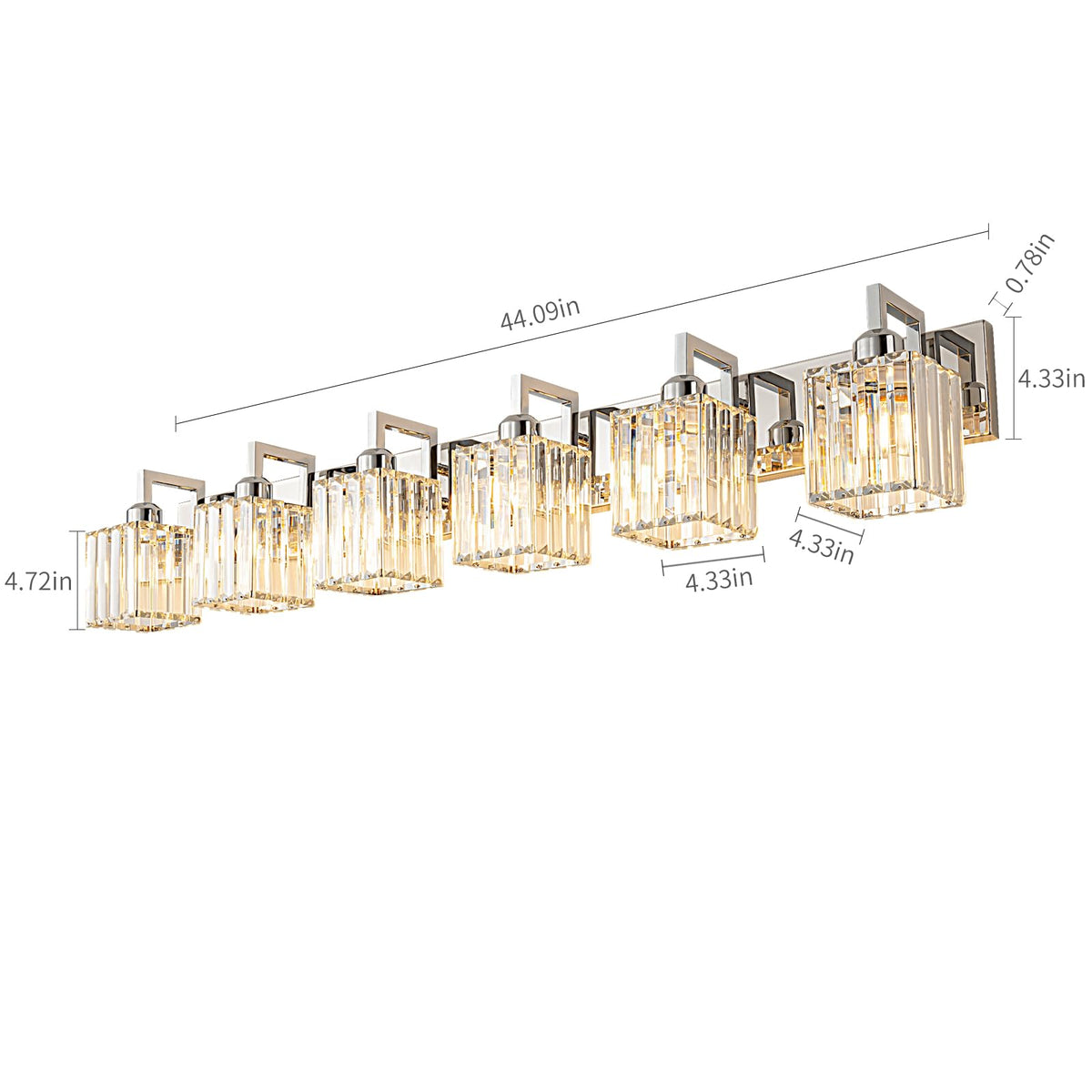 Fdpby Modern Bathroom Vanity Light 6-Lights Chrome Crystal Wall Lamp Bathroom Modern Crystal Vanity Lighting