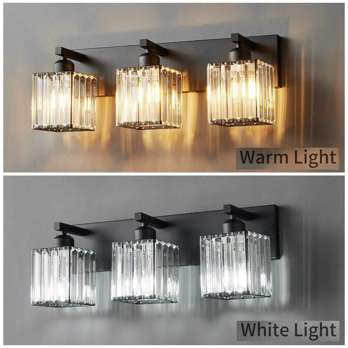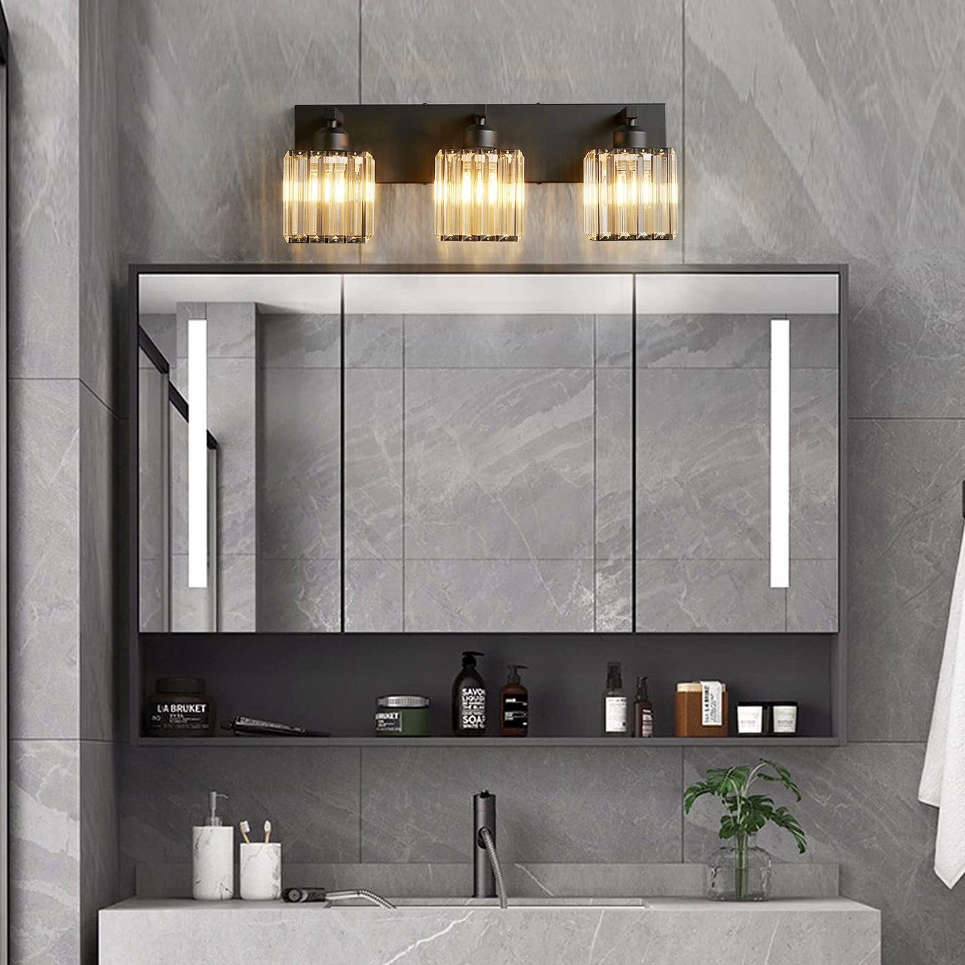 Fdpby Modern Black Crystal Bathroom Vanity Light - 3-Lights Wall Light Fixture