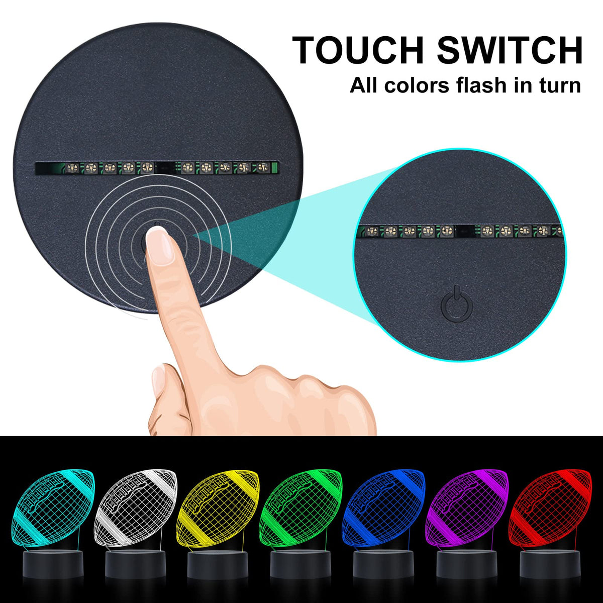 Febdey Football Night Light For Kids, 3D Illusion Night Lamp, Usb Led Table Lamp Smart Touch Dimmer Lights 7 Color Changing Deco