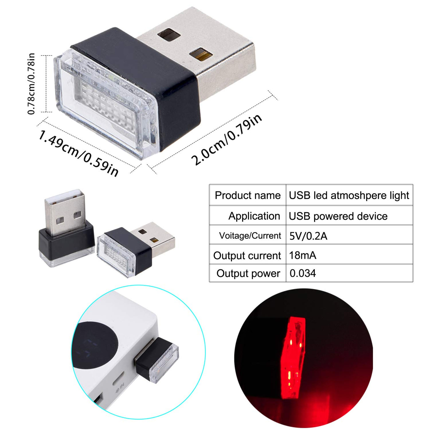 Febrytold 2 Pcs Red Universal Mini Usb Led Car Interior Ambient Atmosphere Lights For Car Interior Trunk Ambient Atmosphere