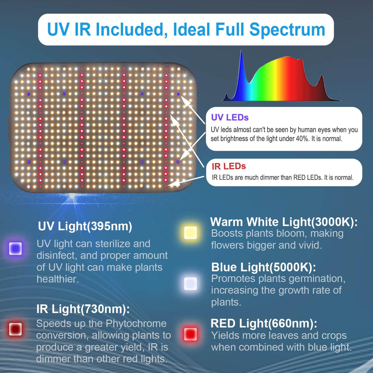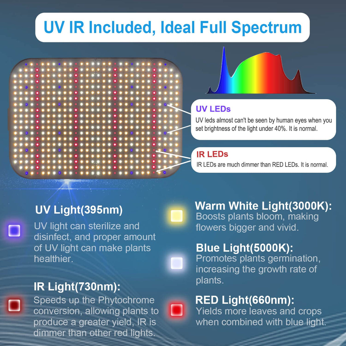 Fecida Dimmable Led Grow Light 12000 Lumen 130 Watt, 2024 Best 2X2Ft Grow Tent Light, Uv-Ir Included Full Spectrum Plant Growing Lamps For Indoor Plants With Daisy Chain Function, Quiet Built-In Fan