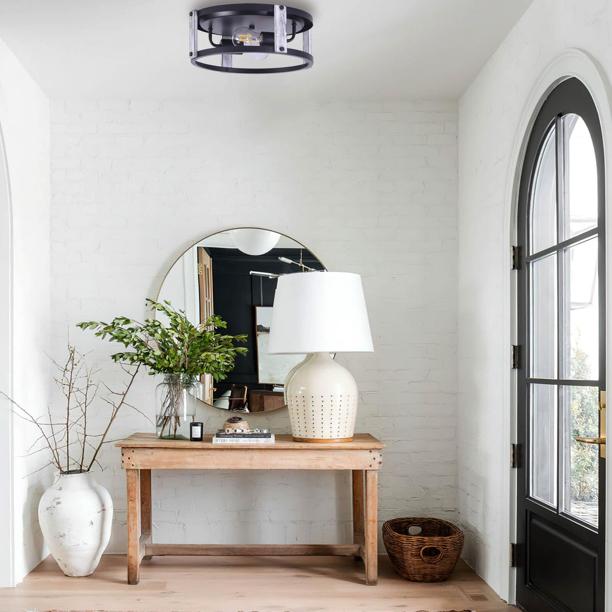FEHEED 2 Pack Flush Mount Ceiling Light,Farmhouse Light Fixture, Ceiling Lights Painted Anti-Corrosive Black for Hallway,Entranc
