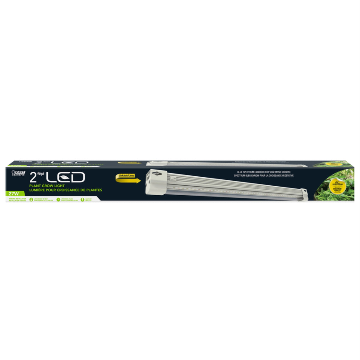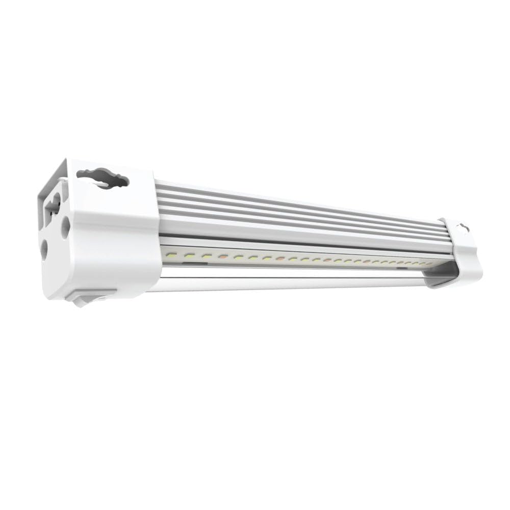Grow better, stronger plants with the Feit Electric GLP12FS/VM/13.5W/LED 1 Ft. full spectrum grow light fixture. Modular 12 In. segments can connect end to end to create a single continuous strip. Snap up to four fixtures together for length or place them side by side for a larger canopy, improving your PAR value up to 4x. Full spectrum wavelengths promote photosynthetic response, with bulbs integrated directly into the fixture taking away the chore of replacing them. Each lightweight fixture comes with a 5 Ft. plug-in cord, a 6 In. connecting cable, and a hanging wire harness. Our energy-efficient LED grow lights last 25000 Hrs/22 Years and put out little heat, saving your crop from burn damage. Choose a no humming, dependable grow lighting fixture for your hydroponic needs.