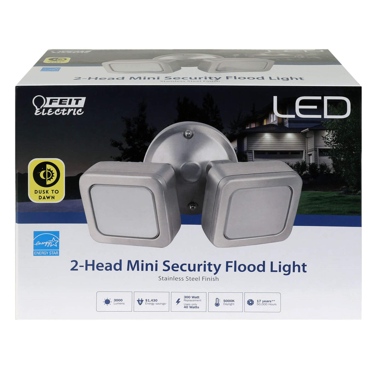Feit Electric - 3000 Lumens Dusk To Dawn Mini Dual Flood Led Security Outdoor Light, 5000K Cct Daylight, Two Head Stainless Mini