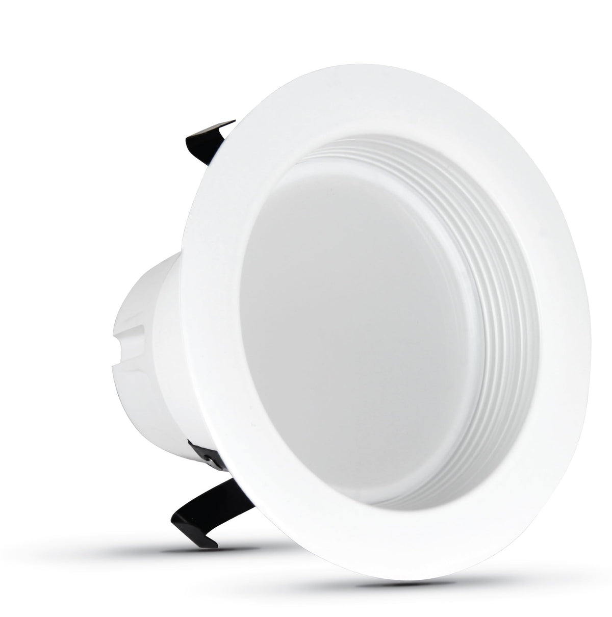 Feit Electric LEDR4B/927CA/MP/6 is designed for easy DIY installation, the downlight fits most 4" recessed can housings and comes with a standard base adapter with a baffle trim for trouble-free do-it-yourself installation. This dimmable LED recessed light has a wide range of uses; compatible with most LED dimmers, you can create your favorite space by utilizing the smooth dimming range of 10% - 100%. Giving you 90+ CRI this light can enhance your home's interior and bring colors to life; the colors will remain true and the light output will remain stable through the lifetime of the bulb. With this 2700K color temperature, it is the warmest option that most closely resembles a standard incandescent blub; giving a warm and cozy feeling, and is often best for kitchens, laundry rooms, living rooms, dens, and bedrooms. Feit Electric LED recessed light provides up to 85.6% energy saving by replacing 50W with 7.2W; replace your old incandescent bulbs for a brighter and more energy-friendly home. UL listed, and FCC compliant, Feit Electric upholds the highest standards for all our light bulbs, fixtures, and string lights with optimal performance and safety; with 40+ years of experience in lighting, we are the leader in lighting innovations. This pack includes 6 (six) LED Recessed Lights with a Medium E26 Base adapter; great value along with the convenience and ease of purchase
