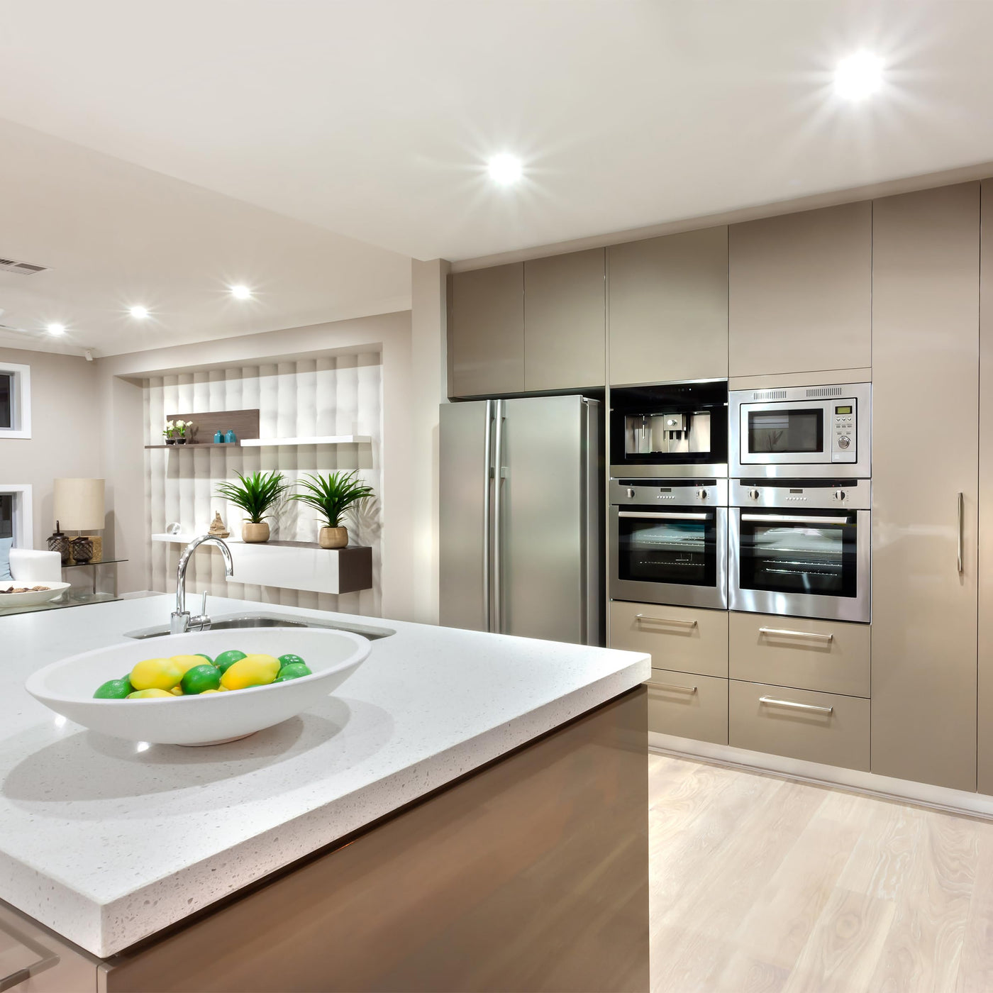 Q: What spaces are ideal for using the Feit Electric 4 inch LED recessed downlight?A: The 2700K soft white light from the Feit Electric recessed downlight is perfect for various spaces, including kitchens, laundry rooms, living rooms, dens, and bedrooms, enhancing the interior while providing a warm and inviting feel.