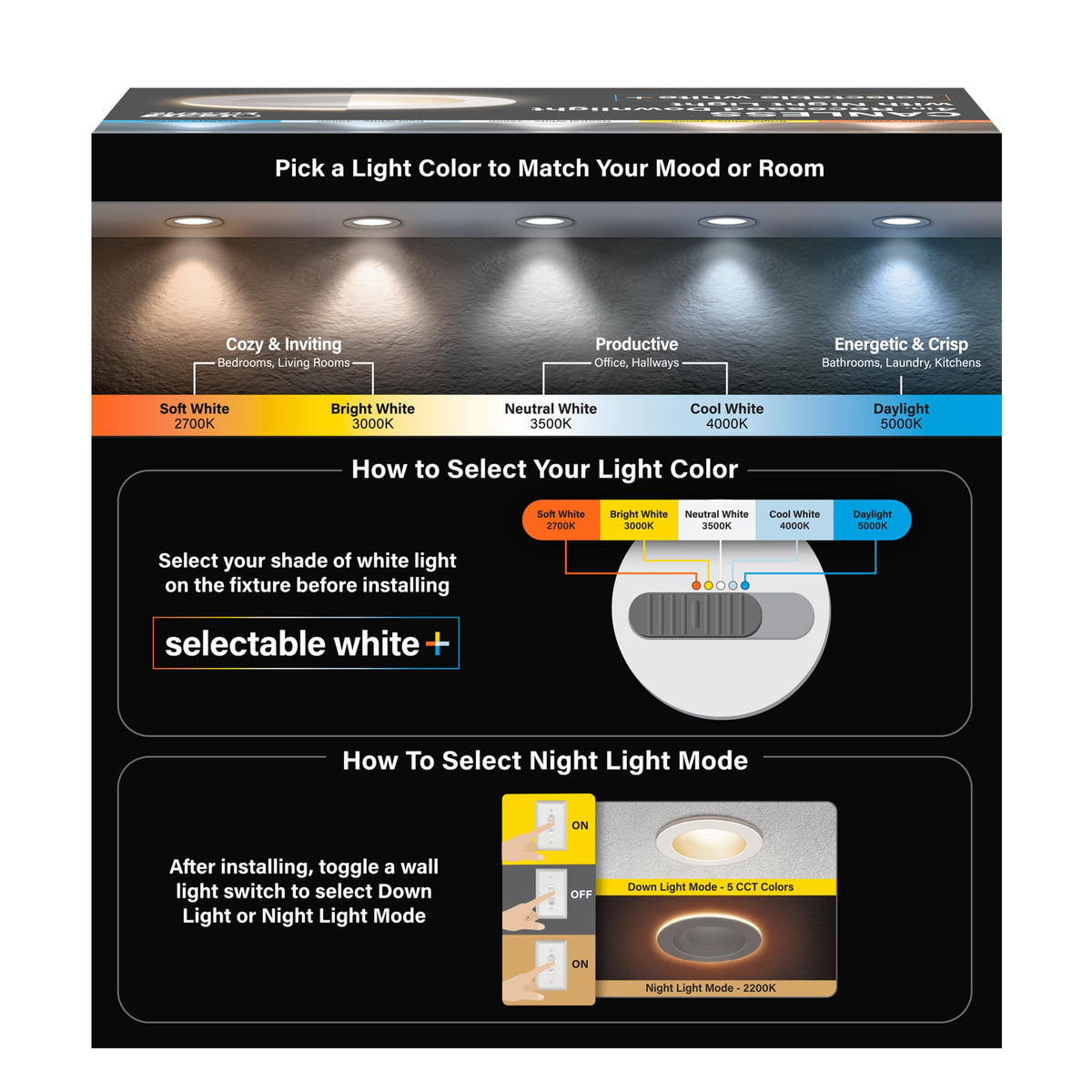 Feit Electric 4'' Led Canless Recessed Downlight With Night Light Mode And Integrated J-Box, 75W Eq, Dimmable, 5Cct Selectable W