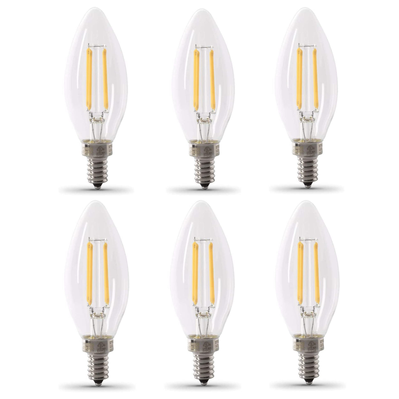 Combine the classic look and feel of glass filament lighting with the advantages of modern LED technology with the CTC40/927CA/FIL/6 decorative chandelier LED light bulb from Feit Electric. This dimmable 2700K Soft White bulb replaces a 40 watt incandescent while using just 3. 2 watts of electricity - saving up to 91% in energy costs. A stylish traditional torpedo tip design with exposed filament wrapped in glass housing is ideal for decorative lighting fixtures and will enhance the look of any room. A 90+ CRI rating makes colors more vibrant and skin tones more natural, all while saving energy and lasting for a decade or more. Specifications: Color temperature: 2700K Brightness: 300 Lumens Watt equivalent: 40 Watts Watt: 3. 3 Watt Dimmable: Yes CEC Certified: Yes Life Hours: 15000. Feit is a leader in first to market lighting innovations and driven to deliver the latest breakthrough in interior and exterior illumination. To us, lighting is everything. Feit Electric bulbs can turn a house into a home, make an unsafe area feel more secure, and navigating your way back to bed a lot easier. Our LED product portfolio includes a full line of energy efficient LED bulbs, retrofit kits. Feit Electric also manufactures energy-efficient LED luminaires including ultra-slim edge-lit ceiling fixtures, light-weight utility shop lights, and weatherproof outdoor LED fixtures. Family owned. Family operated. Based in Los Angeles, California since 1978. We are devoted to our long-time employees, customers, and retail partners - together, we all prosper. See more of our Feit family of products on our Storefront.