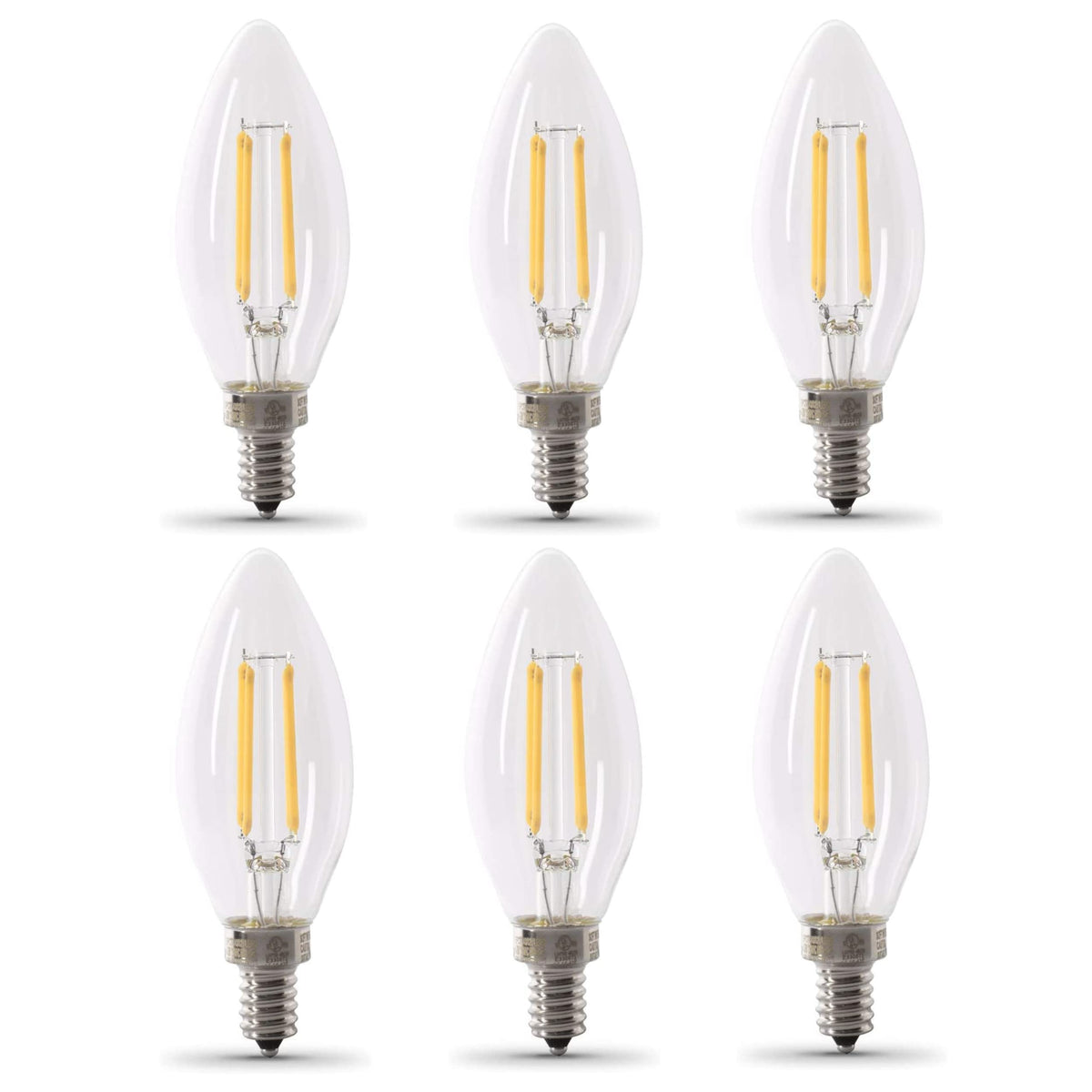 Combine The Classic Look And Feel Of Glass Filament Lighting With The Advantages Of Modern Led Technology With The Ctc40/950Ca/Fil/6 Decorative Chandelier Led Light Bulb From Feit Electric. This Dimmable 5000K Natural Daylight Color Bulb Replaces A 40 Watt Incandescent While Using Just 3. 2 Watts Of Electricity - Saving Up To 91% In Energy Costs. A Stylish Traditional Candelabra Design With Exposed Filament Wrapped In Glass Housing Is Ideal For Decorative Lighting Fixtures And Will Enhance The Look Of Any Room. A 90+ Cri Rating Makes Colors More Vibrant And Skin Tones More Natural, All While Saving Energy And Lasting For A Decade Or More. Specifications: ?? Color Temperature: 5000K ?? Brightness: 300 Lumens ?? Watt Equivalent: 40 Watts ?? Watt: 3. 3 Watt ?? Dimmable: Yes ?? Cec Certified: Yes ?? Life Hours: 15000. Feit Is A Leader In First To Market Lighting Innovations And Driven To Deliver The Latest Breakthrough In Interior And Exterior Illumination. To Us, Lighting Is Everything. Feit Electric Bulbs Can Turn A House Into A Home, Make An Unsafe Area Feel More Secure, And Navigating Your Way Back To Bed A Lot Easier. Our Led Product Portfolio Includes A Full Line Of Energy Efficient Led Bulbs, Retrofit Kits. Feit Electric Also Manufactures Energy-Efficient Led Luminaires Including Ultra-Slim Edge-Lit Ceiling Fixtures, Light-Weight Utility Shop Lights, And Weatherproof Outdoor Led Fixtures. Family Owned. Family Operated. Based In Los Angeles, California Since 1978. We Are Devoted To Our Long-Time Employees, Customers, And Retail Partners - Together, We All Prosper. See More Of Our Feit Family Of Products On Our Storefront.