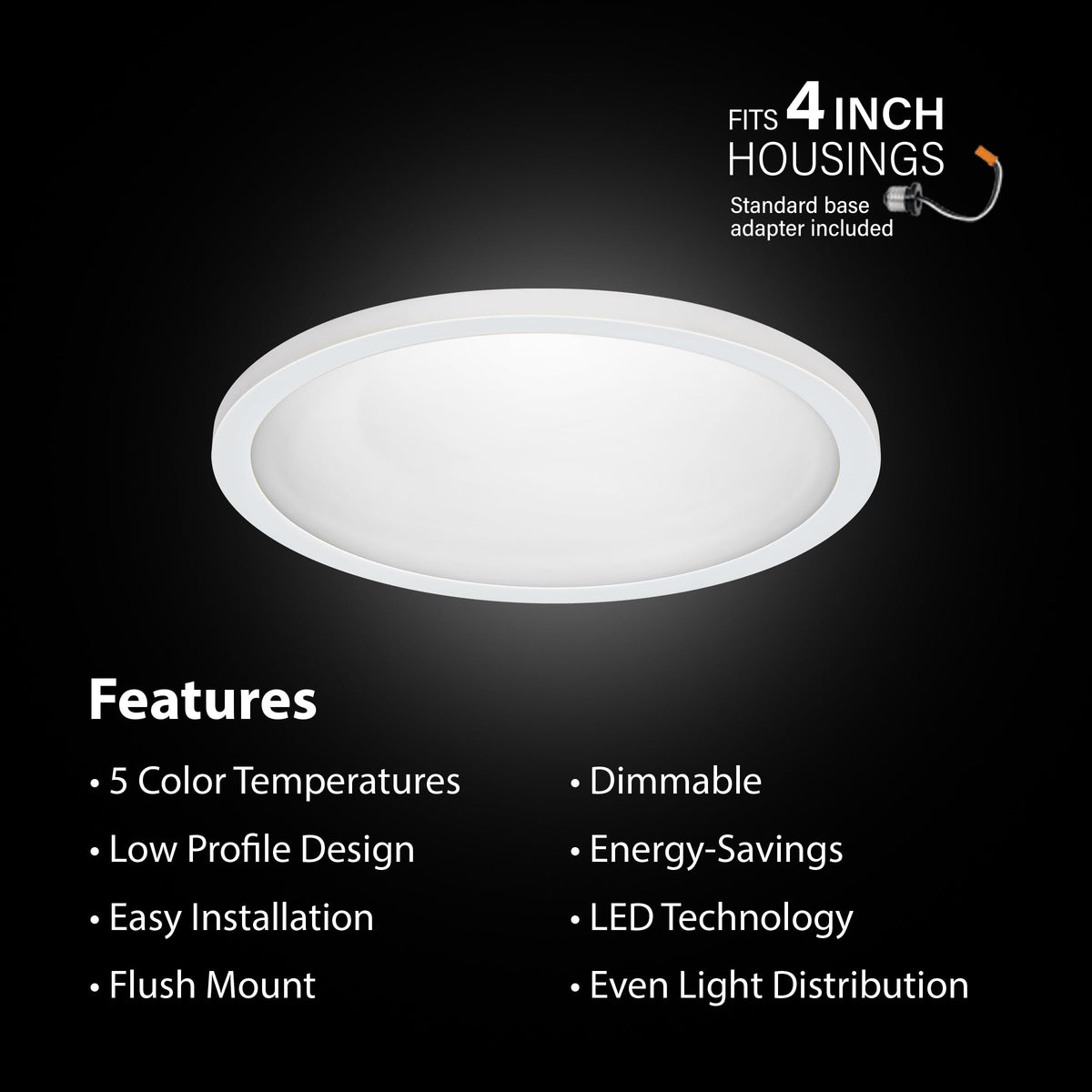 The Feit Electric 74204/6Wyca 5-Inch Square Led Flat Panel With Selectable Color Temperatures Provides Added Function And Beauty To Any Residential Or Commercial Area. Its Patented Selectable Color Temperature Feature Allows Users To Choose Warm White, Neutral White, Cool White, Daylight White, Or Daylight Deluxe White (3000K/3500K/4000K/5000K/6500K) On The Fixture Or To Adjust After Installation By Toggling A Wall Switch. The Ultra-Slim, Low-Profile Design (Under An Inch) Features Innovative Edge-Lit Leds That Create Uniform Light Distribution Without Hot Spots, Flickers, Or Glare. It Is An Ideal Choice For Kitchens, Bathrooms, Bedrooms, Hallways, Living Rooms, And Anywhere You Need Low-Profile Lighting. It Can Be Flush Mounted Or Installed In Recessed Cans, Fitting In Most 4-Inch Housings, With An Included Standard Base Adapter. A Frosted Polycarbonate Lens And White Aluminum Frame Add A Touch Of Modern Style To Every Room, And A 90+ Cri Will Make Colors Appear More Vibrant And Appealing. This Ceiling Fixture Is Compliant With California Title 24 And Energy Star Requirements. It Produces 600 Lumens Of Evenly Distributed Light Using Only 7.2 Watts, Saving Up To 85.6% On Energy Costs Compared To Traditional Incandescent Lights. It Has An Average Life Of 50,000 Hours/45.7 Years With An Estimated Annual Energy Cost Of Only $0.87/Year.