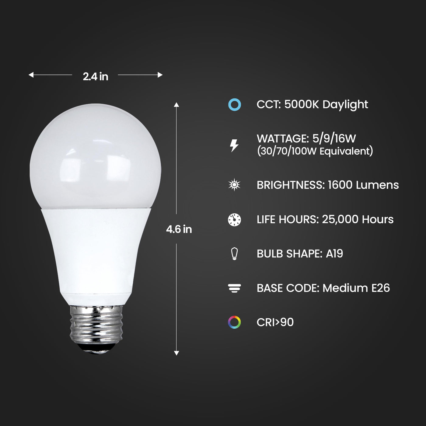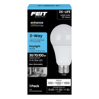 Feit Electric A19 Led Light Bulb, 3-Way Adjustable Wattage 30/70/100W Equivalent, E26 Base, Non-Dimmable, 1600 Lumen, 5000K Dayl