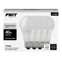 Feit Electric A19 Led Light Bulb, 40-Watt Equivalent, 3500K Neutral White, E26 Base, 450 Lumens, 11,000-Hour Lifespan, General-P