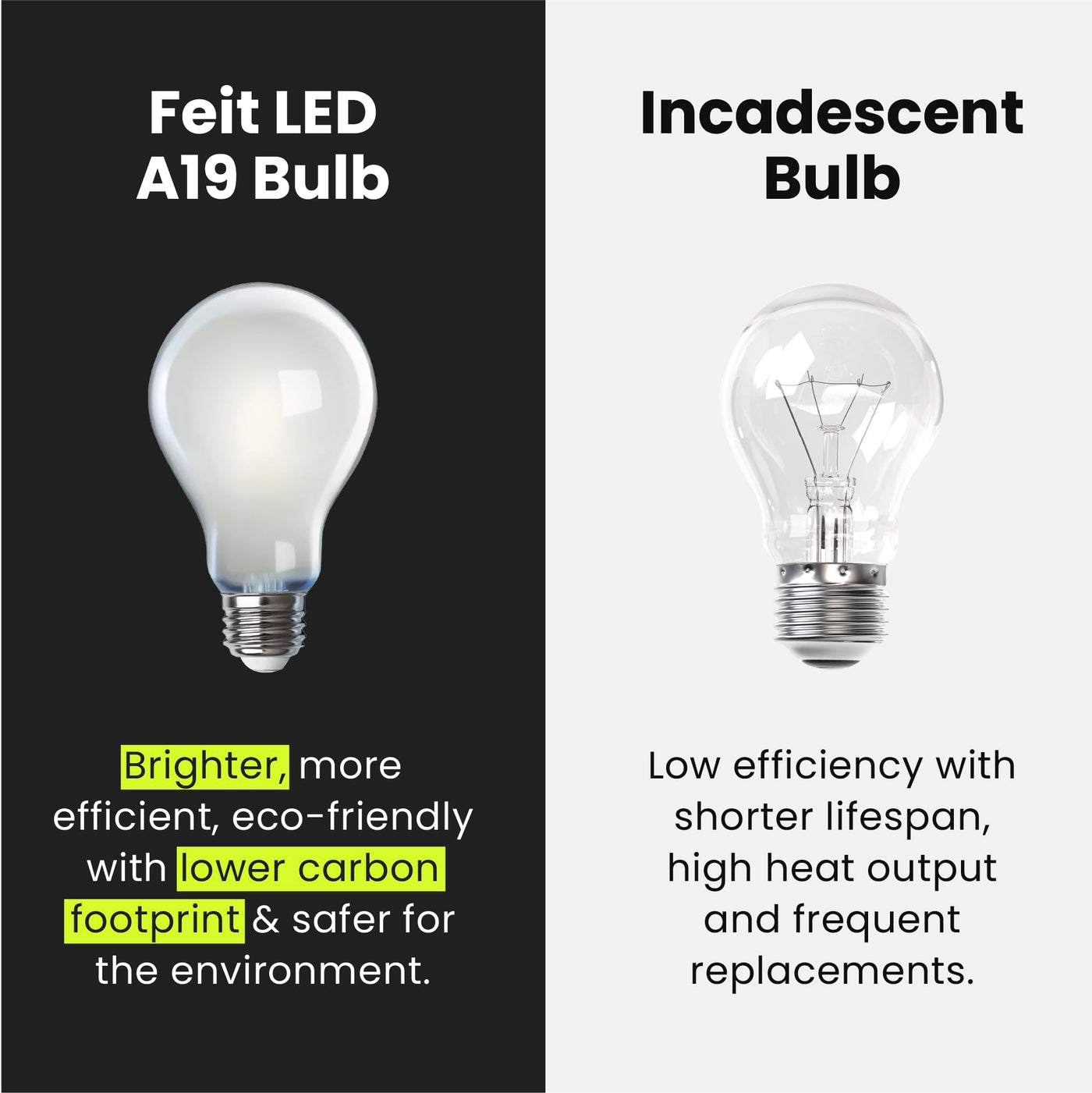 Enjoy All The Benefits Of Advanced Led Technology With Feit Electric Led Bulbs. These Frosted 2700K Soft White Light Bulbs Provide Warm, Inviting Light. They'Re Perfect For Use In Living Rooms, Dining Areas, And Bedrooms. Customize The Mood In Your Space With Smooth Dimming When Combined With Led-Compatible Dimmer Switches (Sold Separately). Enhance 90+ Cri Color Rendering Makes Colors Appear More Vibrant And Skin Tones Look More Natural. These Bulbs Replace 75-Watt Incandescent Bulbs Using 84% Less Energy. Each Bulb Produces An 1100-Lumen Light Output Using Only 12 Watts Of Electricity. Get Instant On To Full Brightness With Relatively Cool Running Performance. Feit Electric A1975/927Ca/Fil/4/Gb Frosted A19 Light Bulbs Have An Average Life Of 17,000 Hours/15.5 Years. They Are 100% Mercury Free. Choose A Dependable Household Bulb For Residential Or Commercial Applications.