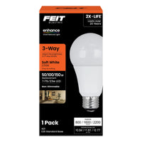 Feit Electric A21 Led Light Bulb, 3-Way Adjustable Wattage 50/100/150 Equivalent, E26 Base, Non Dimmable, 2200 Lumen, 2700K Soft