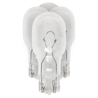 2,000 life hours. Wedge base. 5/8" diameter. 1-1/2" maximum overall length. Clear. T5 bulb type. 12 volt. For outdoor lighting or landscape lamps. 4 per card. 11 watt. Length: 3.5. Height: 5