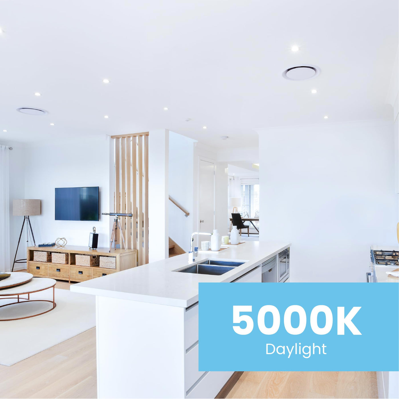 Feit Electric BR30/850/10KLED/3 LED BR30 Light bulb provides up to 85.4% energy saving by replacing 65W with 9.5W; replace your old incandescent bulbs for a brighter and more energy-friendly space. Lasting 10 times longer than incandescent and halogen bulbs with a lifespan of up to 10 years, eliminating the need to constantly change your light bulbs. This 5000K color temperature simulates full spectrum light; providing an energizing crisp white light for any room. No warm-up time for these bulbs; they will light up instantly with its full brightness of 800 Lumens with stable daylight color. UL listed and FCC compliant, Feit Electric upholds the highest standards for all our light bulbs, fixtures and string lights with optimal performance and safety; with 40+ years of experience in lighting, we are the leader in lighting innovations