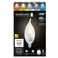 Feit Electric Ca10 Led Candle Bulb Flame Tip, 40W Equivalent, Dimmable, Color Selectable 6-Way, 5Cct, E12 Candelabra Base, 90 Cr