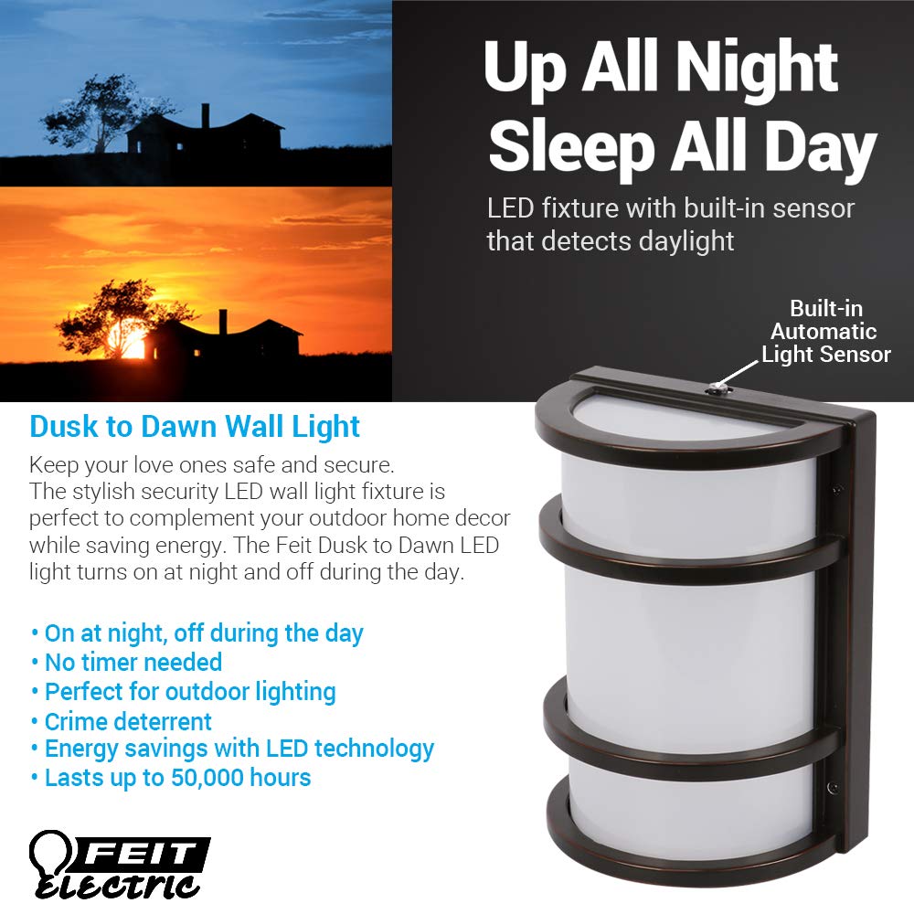 Feit Electric Dusk To Dawn Led Bronze Security Wall Light 5000K - Outdoor Half Moon Design