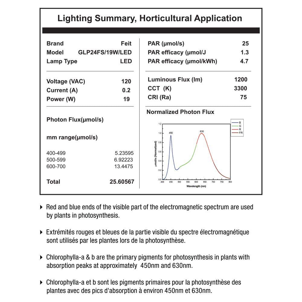 Feit Electric GLP24FS/19W/LED dual full spectrum LED with blue spectrum enriched 2 foot linkable grow light only uses 19 watt and comes fully assembled with an ultra-light weight design that can be used in hanging or flush mount installation. This no-humming LED plant grow light emits more light in the useful 450nm blue spectrum than regular white LED bulbs and emits spectrum wavelengths and color for better photosynthetic response and thus better vegetative growth. With 25 PAR(mols/s), it is ideal for all phases of indoor plant growth and is suitable for soil or hydroponic gardens. There are no lamps to dispose of or replace with this 2 foot plant grow light. Dual lamp with its cool operation that prevents burning of leaves compared to high pressure sodium lamps. Includes two 6 inch hanging wire harnesses, a 5 foot plug-in cord and easy on/off light switch. Durable smooth edge housing and light weight design facilitates the installation process. It can link up to 8 of the grow light fixtures together. The light is great for high light plants (tomatoes, cucumbers and peppers) and low light plants (leafy greens and herbs). The full spectrum with enriched Blue Spectrum Dual LED Grow Lights offer low heat emission and low energy consumption, produce even light distribution and have an average life of 25, 000 hours / 22. 8 years. Grow your plant like a pro. Feit is a leader in first to market lighting innovations and driven to deliver the latest breakthrough in interior and exterior illumination. To us, lighting is everything. The right light can turn a house into a home, make an unsafe area feel more secure, and navigating your way back to bed a lot easier. Our LED product portfolio includes a full line of energy efficient LED bulbs and retrofit kits. Feit Electric also manufactures energy-efficient LED luminaire including ultra-slim edge-lit ceiling fixtures, light-weight utility shop lights, and weatherproof outdoor LED fixtures. Family owned. Family operated. Based in Los Angeles, California since 1978. We are devoted to our long-time employees, customers, and retail partners - together, we all prosper. See more of our Feit family of products in store.