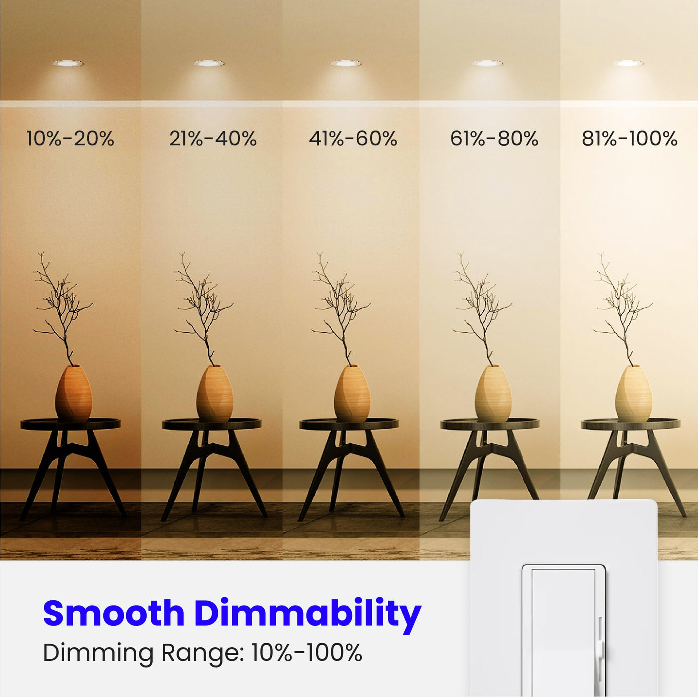 Feit Electric BR30DM/10KLED/MP/12 LED BR30 Light bulb provides up to 83.8% energy saving by replacing 65W with 10.5W; replace your old incandescent bulbs for a brighter and more energy-friendly space. Lasting 10 times longer than incandescent and halogen bulbs with a lifespan of up to 10 years, eliminating the need to constantly change your light bulbs. This dimmable LED light bulb has a wide range of uses; compatible with most LED dimmers you are able create your favorite space and control the look and feeling of your space using the dimming range of 10% - 100%. With this 2700K color temperature it is the warmest option that most closely resembles a standard incandescent blub; giving a warm and cozy feeling and is often best for kitchens, laundry rooms, living rooms, dens and bedrooms. No warm-up time for these bulbs; they will light up instantly with its full brightness of 800 Lumens with stable daylight color