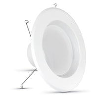 Feit Electric LEDR56B/950CA/MP/6 is designed for easy DIY installation, the downlight fits most 5-6" recessed can housings and comes with a standard base adapter with a baffle trim for trouble-free do-it-yourself installation. This dimmable LED recessed light has a wide range of uses; compatible with most LED dimmers, you can create your favorite space by utilizing the smooth dimming range of 10% - 100%. Giving you 90+ CRI this light can enhance your home's interior and bring colors to life; the colors will remain true and the light output will remain stable through the lifetime of the bulb. This 5000K color temperature simulates full-spectrum light; providing an energizing crisp white light for any room. Feit Electric LED recessed light provides up to 86.4% energy saving by replacing 75W with 10.2W; replace your old incandescent bulbs for a brighter and more energy-friendly home. UL listed, and FCC compliant, Feit Electric upholds the highest standards for all our light bulbs, fixtures, and string lights with optimal performance and safety; with 40+ years of experience in lighting, we are the leader in lighting innovations. This pack includes 6 (six) LED Recessed Lights with a Medium E26 Base adapter; great value along with the convenience and ease of purchase