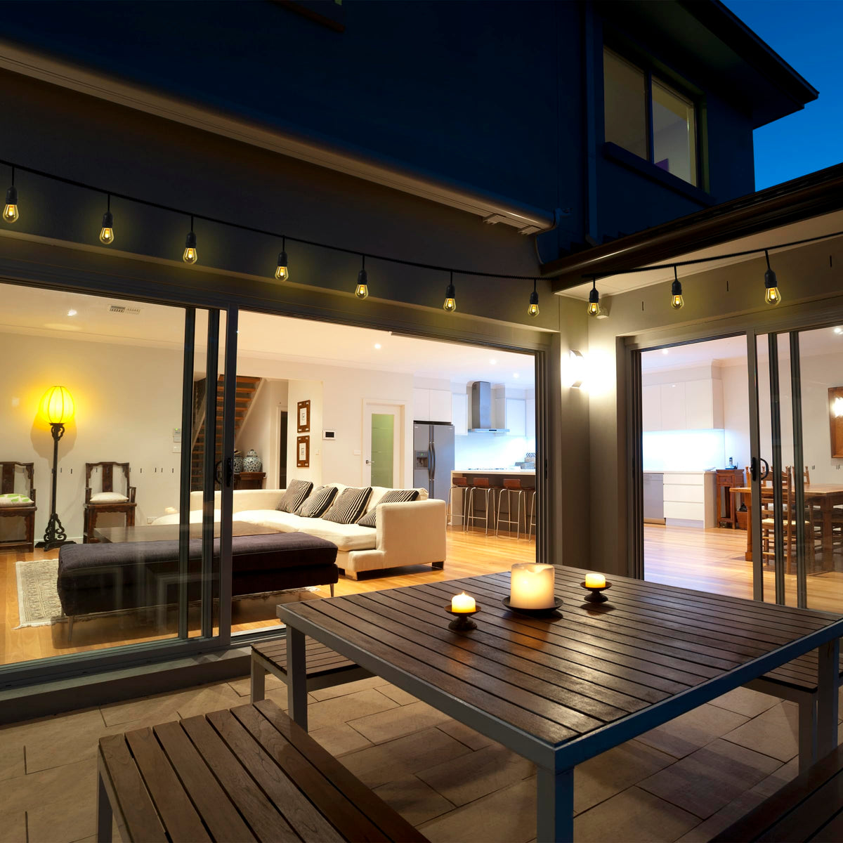 Q: Are these string lights safe for outdoor use?A: Yes, the Feit Electric LED String Lights are wet rated and UL certified, ensuring they meet the highest safety standards for outdoor lighting. They are designed to withstand extreme temperatures and weather conditions for year-round enjoyment.