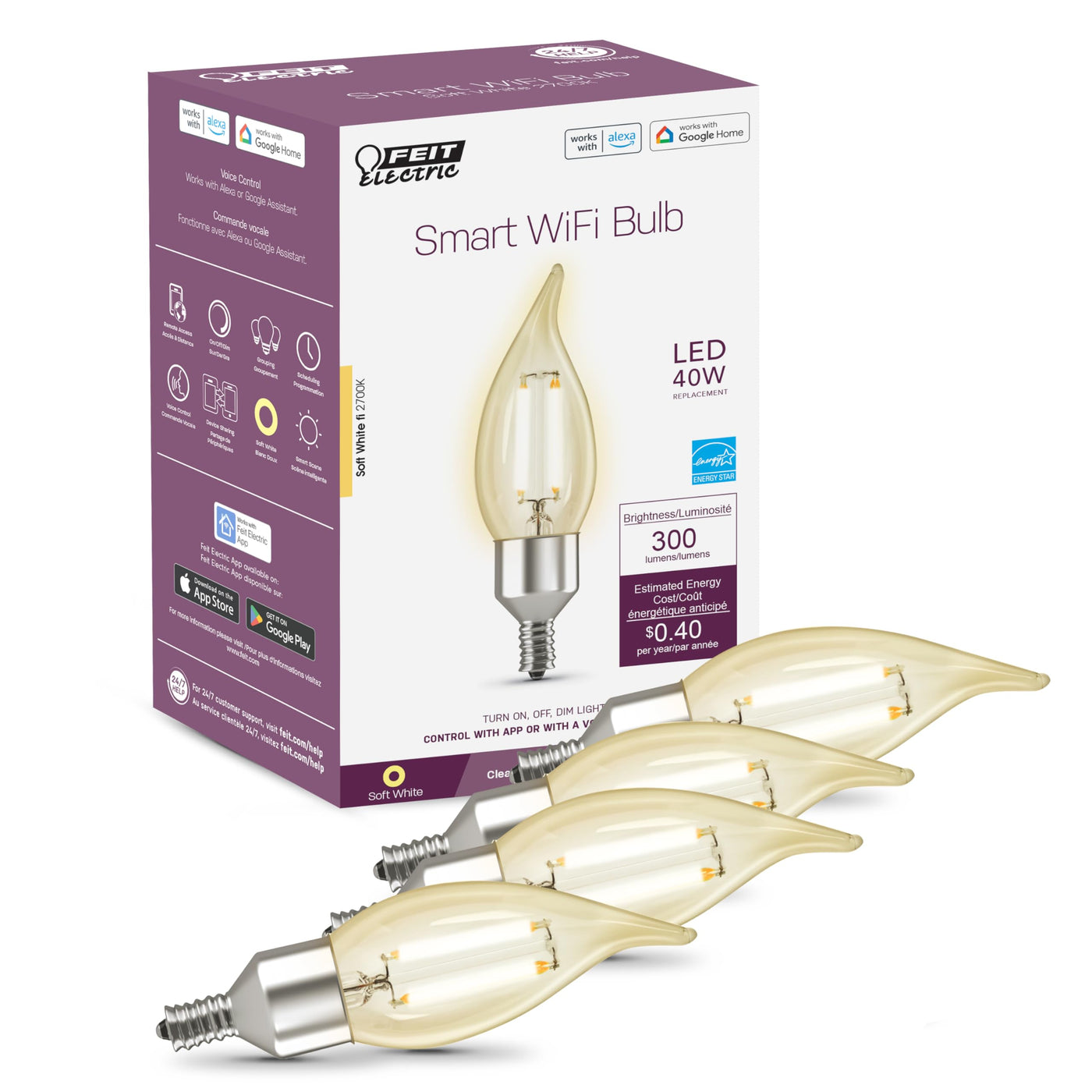 Feit Electric Smart Led Candle Wifi Bulb, Works With Alexa Or Google Assistant, E12 Base, No Hub, Flame Tip Filament Chandelier