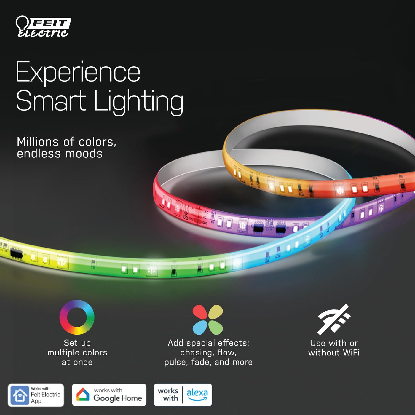Feit Electric Smart Light Strip 16Ft, Ultrathin Rgbw Color Chasing Led Light Strip, 2.4Ghz Wi-Fi Enabled, Works With Alexa And G