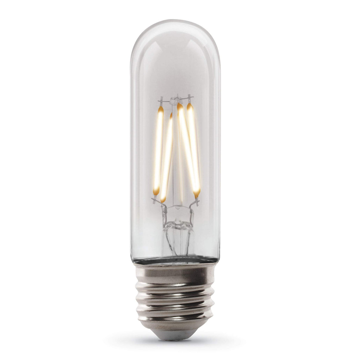 Feit Electric T10/CL/VG/LED Combine classic style, modern reliability and LED energy savings with the Feit Electric Original Vintage collection; this vintage bulb is made with LED exposed filament and wrapped in clear housing giving an antique look adding an elegant, historic touch to any room; great for homes and businesses. By providing this nostalgic look showing the appearance of filaments gives off a warm ambient glow makeing it the perfect bulb for indoor lighting fixtures, illuminating art, collectibles in showcases, sconces, lamp posts, entryways or any indoor fixture with an E26 Base. This dimmable LED light bulb has a wide range of uses; compatible with most LED dimmers you are able create your favorite space by controlling the look and feeling of your space using the smooth dimming range of 10% - 100%. No warm-up time for these bulbs; they will light up instantly with its full brightness of 300 Lumens with stable color. Feit Electric LED T10 Light bulb provides up to 90% energy saving by replacing 40W with 4W; replace your old incandescent bulbs for a brighter and more energy-friendly home? QUALITY and SAFETY: UL listed and FCC compliant, Feit Electric upholds the highest standards for all our light bulbs, fixtures and string lights with optimal performance and safety; with 40+ years of experience in lighting, we are the leader in lighting innovations