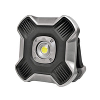 Light up the worksite with the Feit Electric WORK2000 portable LED work light. Durably constructed with cast metal housing, and UL Wet rated, this compact work light outputs up to 2000 lumens of 6500K Daylight color temperature light. Customize the brightness to your needs and choose from five preset lighting levels: 2000, 1600, 1200, 750 or 350 lumens. An attached foldable handle allows easy transport and setup on any surface. The integrated lithium-ion battery provides up to 10 hours of continual light at the low brightness setting. Integrated USB power bank to charge external devices. Built-in battery indicator for battery level. Choose a Feit Electric work light for your portable lighting needs.