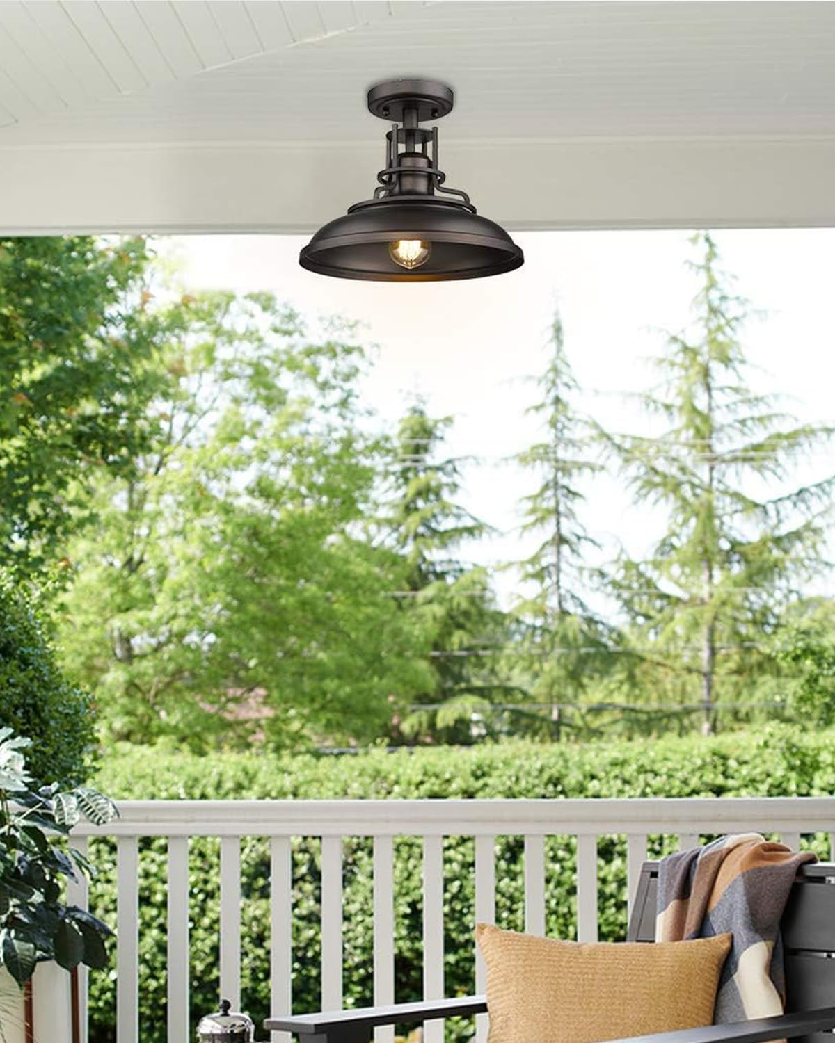 Q: What style is the FEMILA 1-Light Semi Flush Mount Light Fixture?A: The FEMILA light fixture features an industrial style with a vintage design, highlighted by its oil rubbed bronze finish that adds a stylish touch to any space.