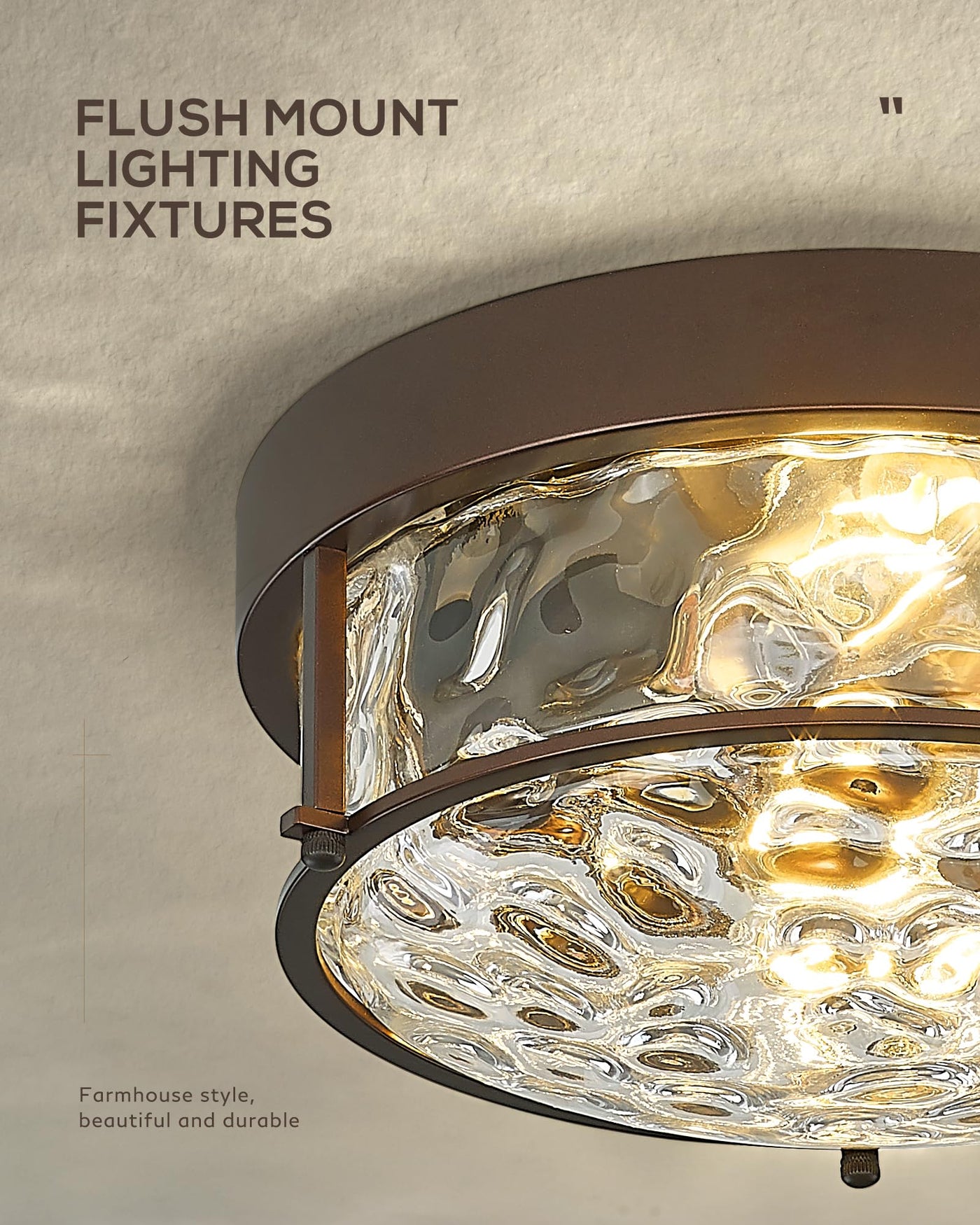 This ceiling light features a unique water ripple glass design that adds sophistication to your home decor. The Oil Rubbed Bronze finish not only brings a vintage charm but also ensures durability. Crafted from well-made metal, the fixture is built to last while providing ample illumination. It measures D12”*H6“, making it suitable for close-to-ceiling installations. The light supports a maximum wattage of 60W and is compatible with LED, CFL, Edison, or any bulbs under 60W with an E26 base (bulbs not included).