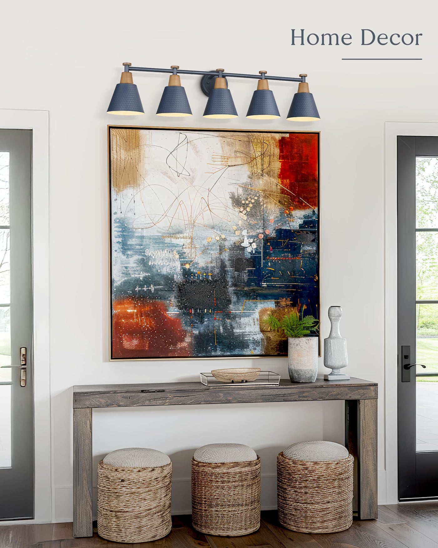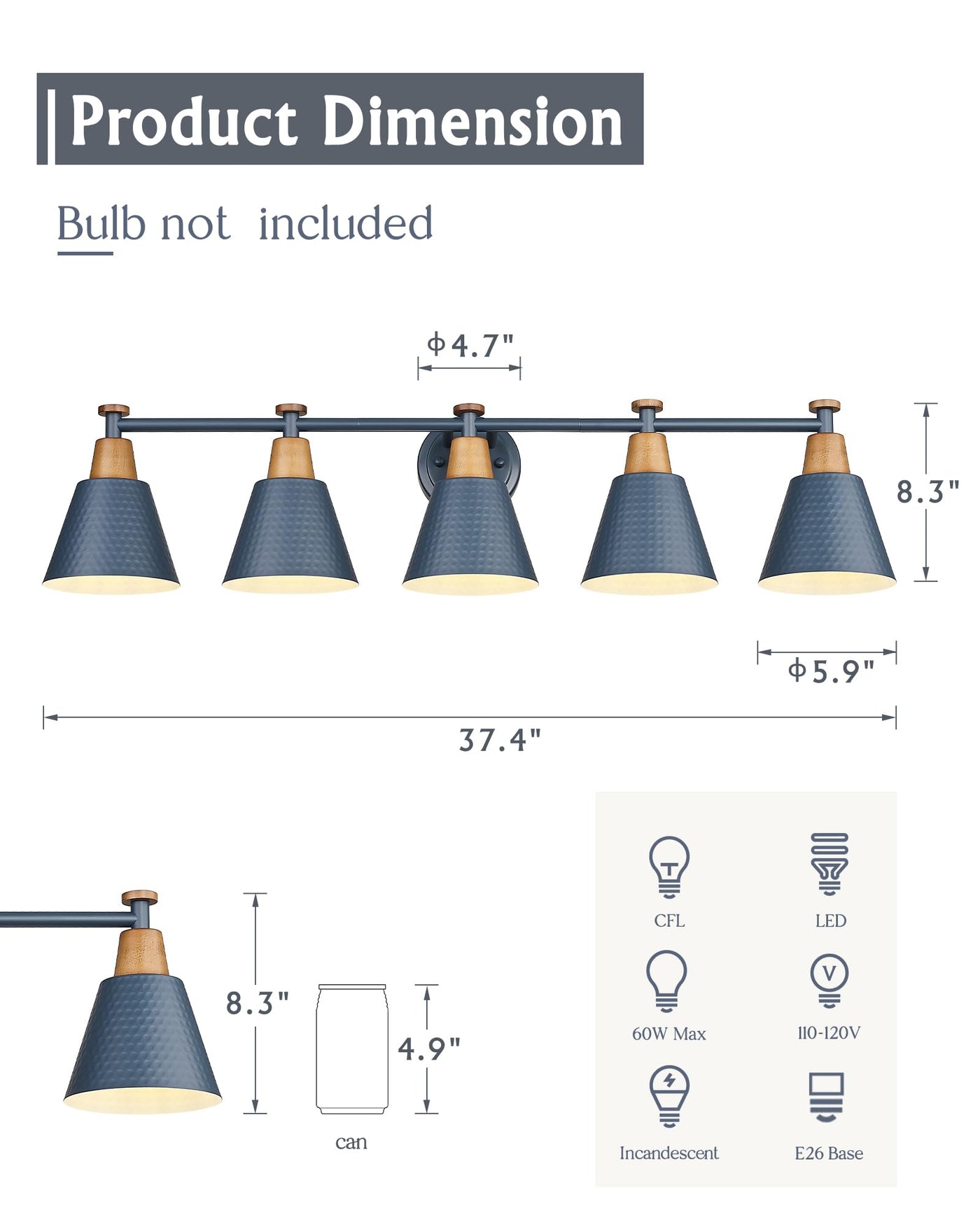 Femila 5 Light Bathroom Vanity Light, 37.4'' Bathroom Lighting Fixtures Over Mirror, Blue Finish, E26 Base, 4Fg59B-5W Blue