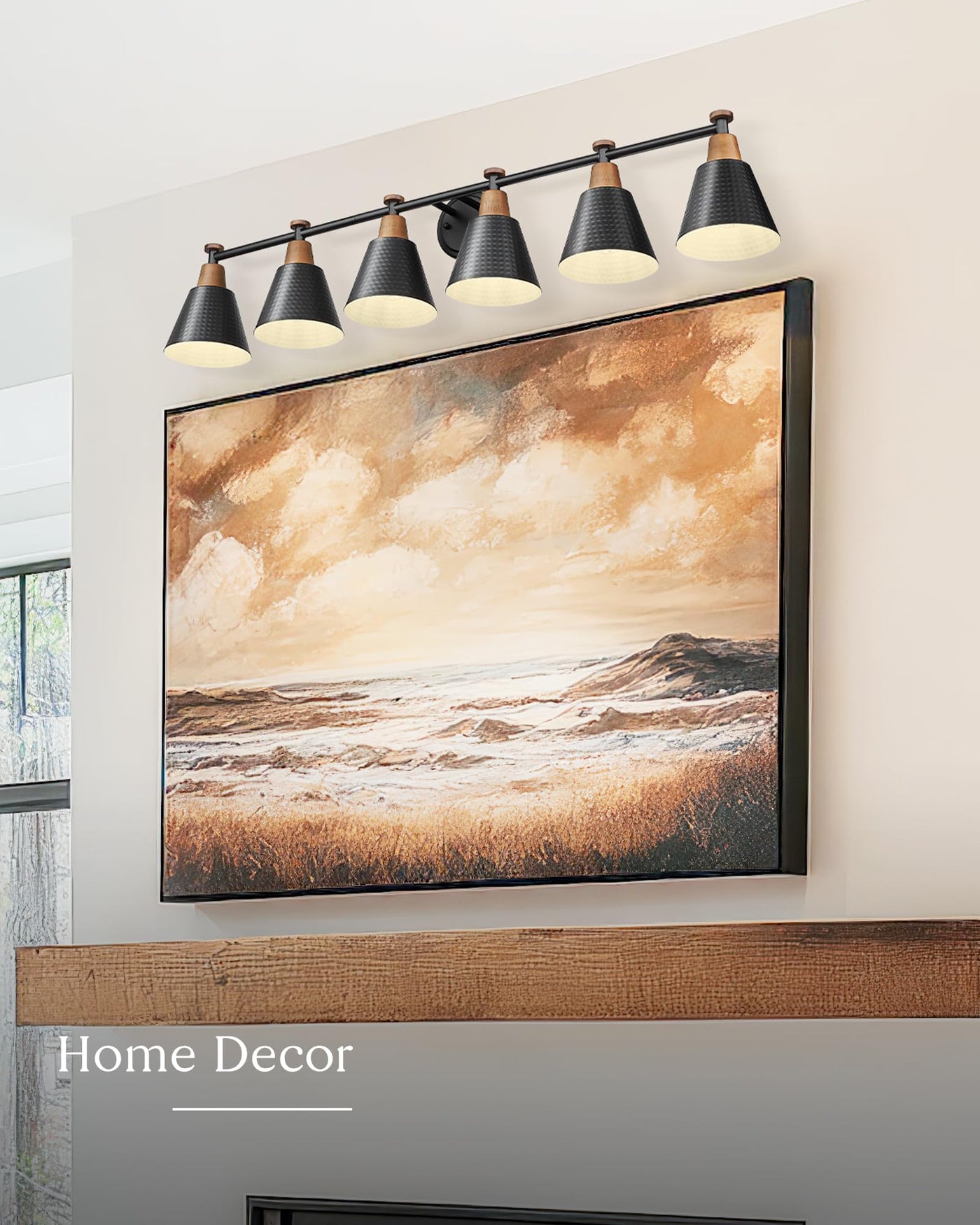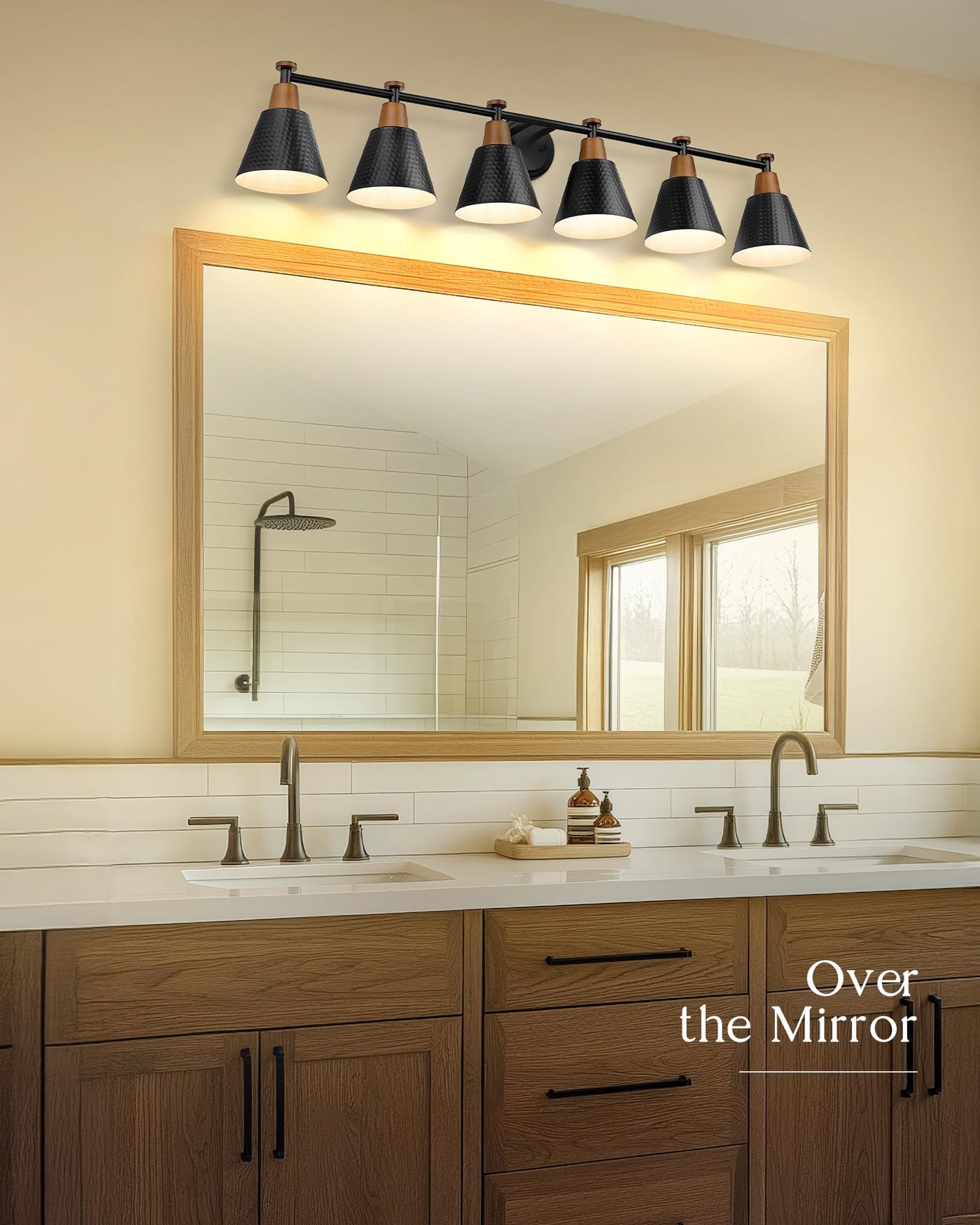 Femila Black Vanity Light, 6 Light Bathroom Vanity Light, Vintage Bathroom Light Fixtures Over Mirror, E26 Base, 4Fg59B-6W Bk