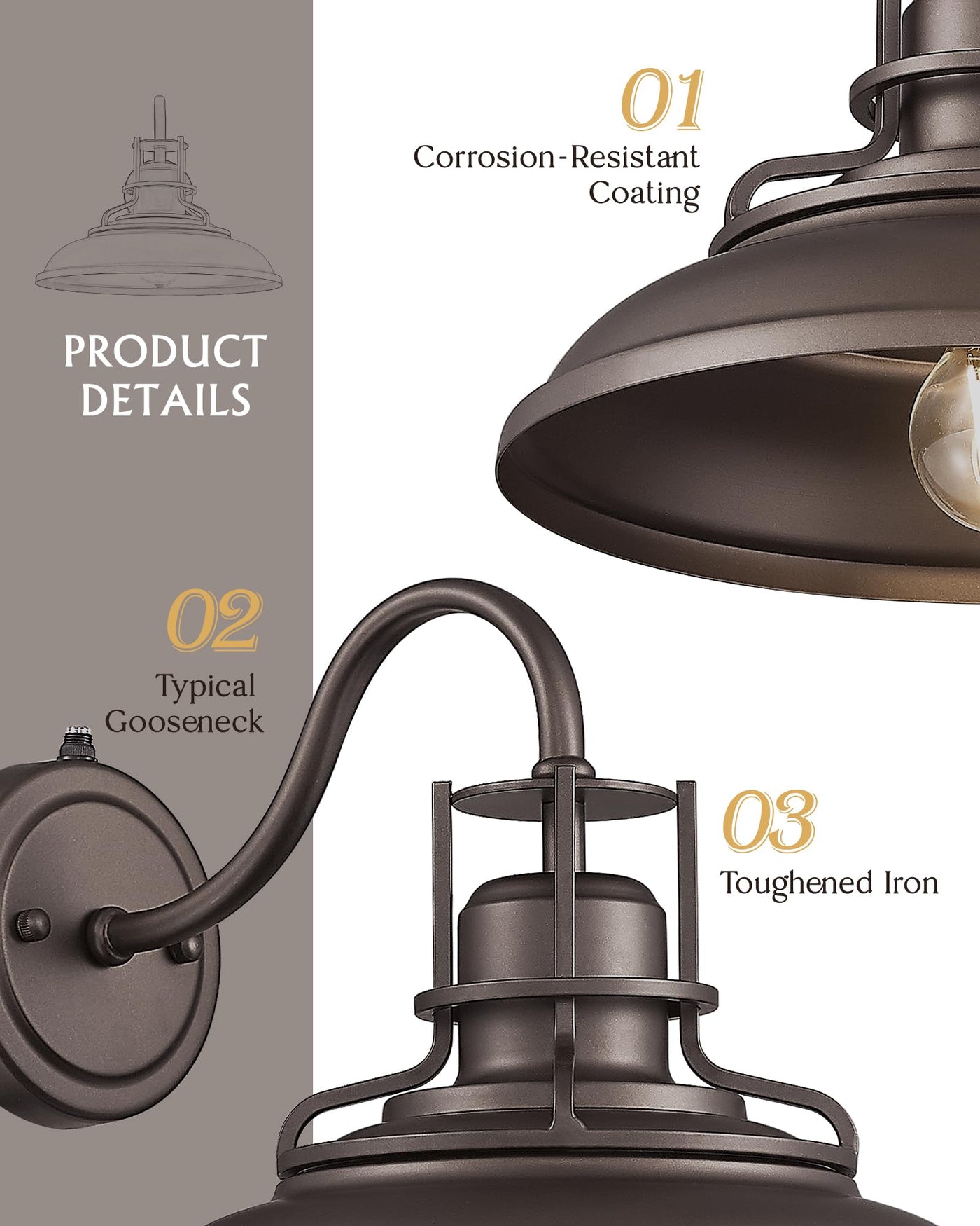 FEMILA Dusk to Dawn Barn Lights, 12 Oil-Rubbed Bronze Gooseneck Outdoor Light Fixture, Exterior Lighting Fixtures, Outdoor Porch