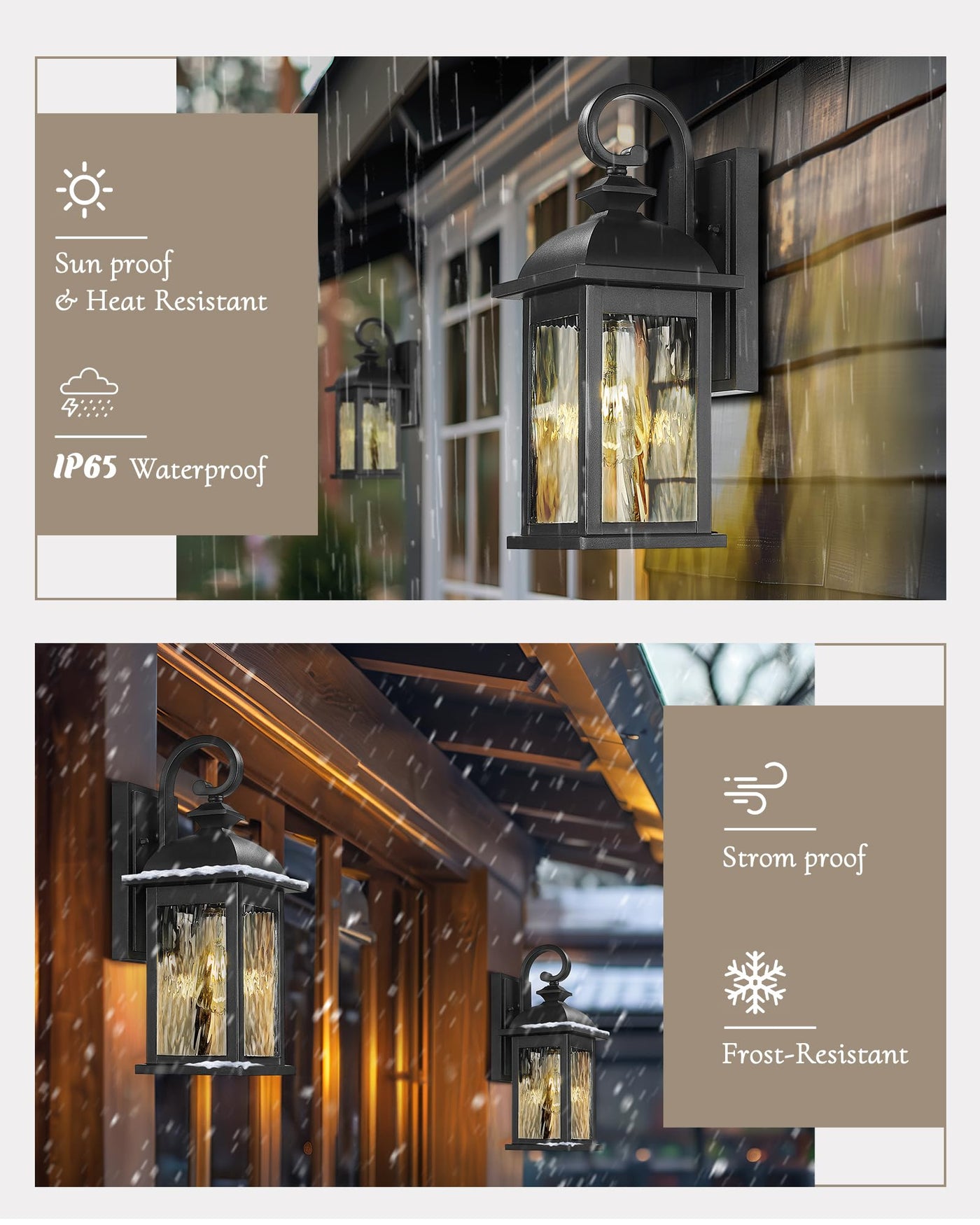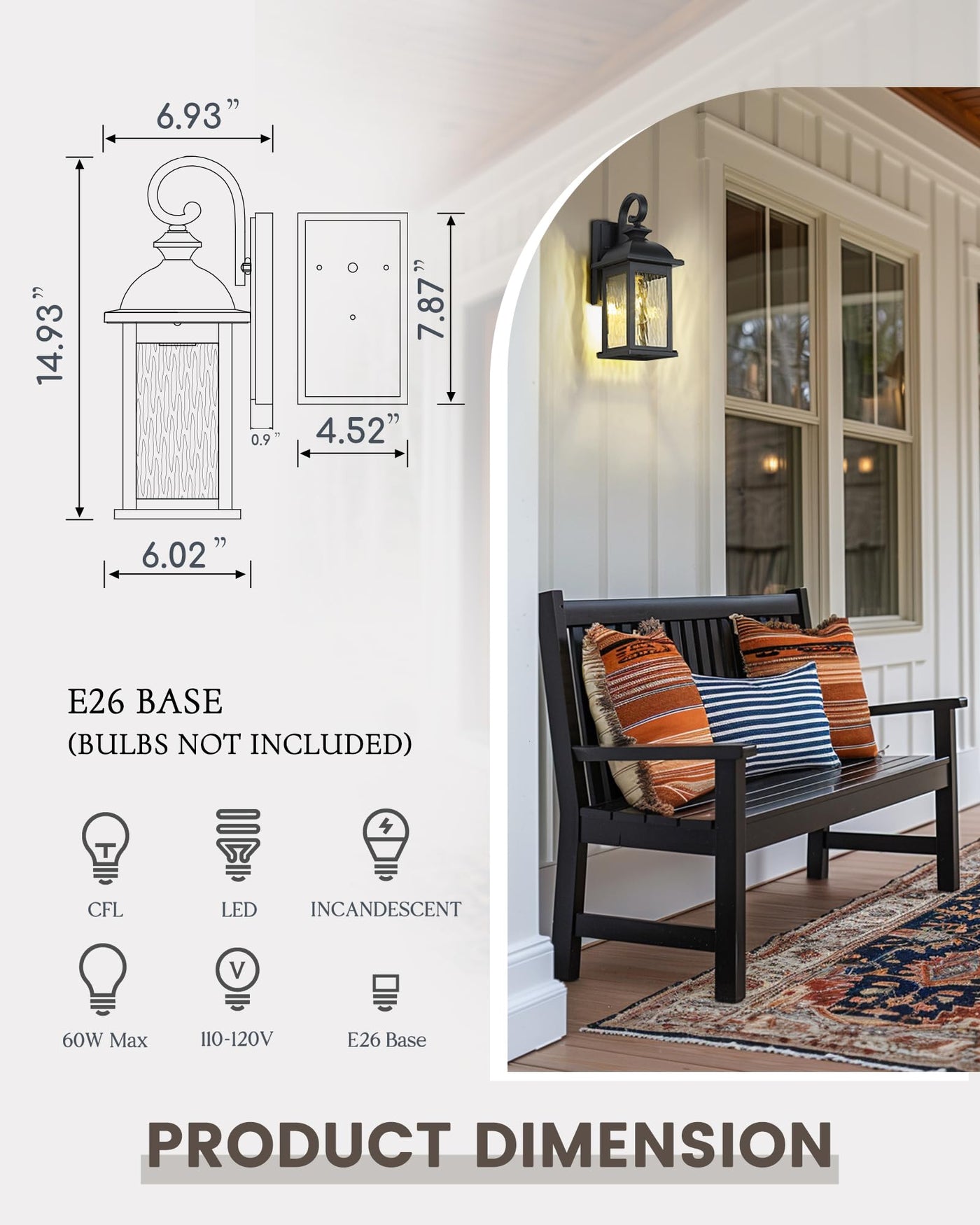 Femila Outdoor Wall Light Fixture,1-Light Exterior Waterproof Wall Sconce, 15'' Front Porch Lights,Anti-Rust Matte Black Finish
