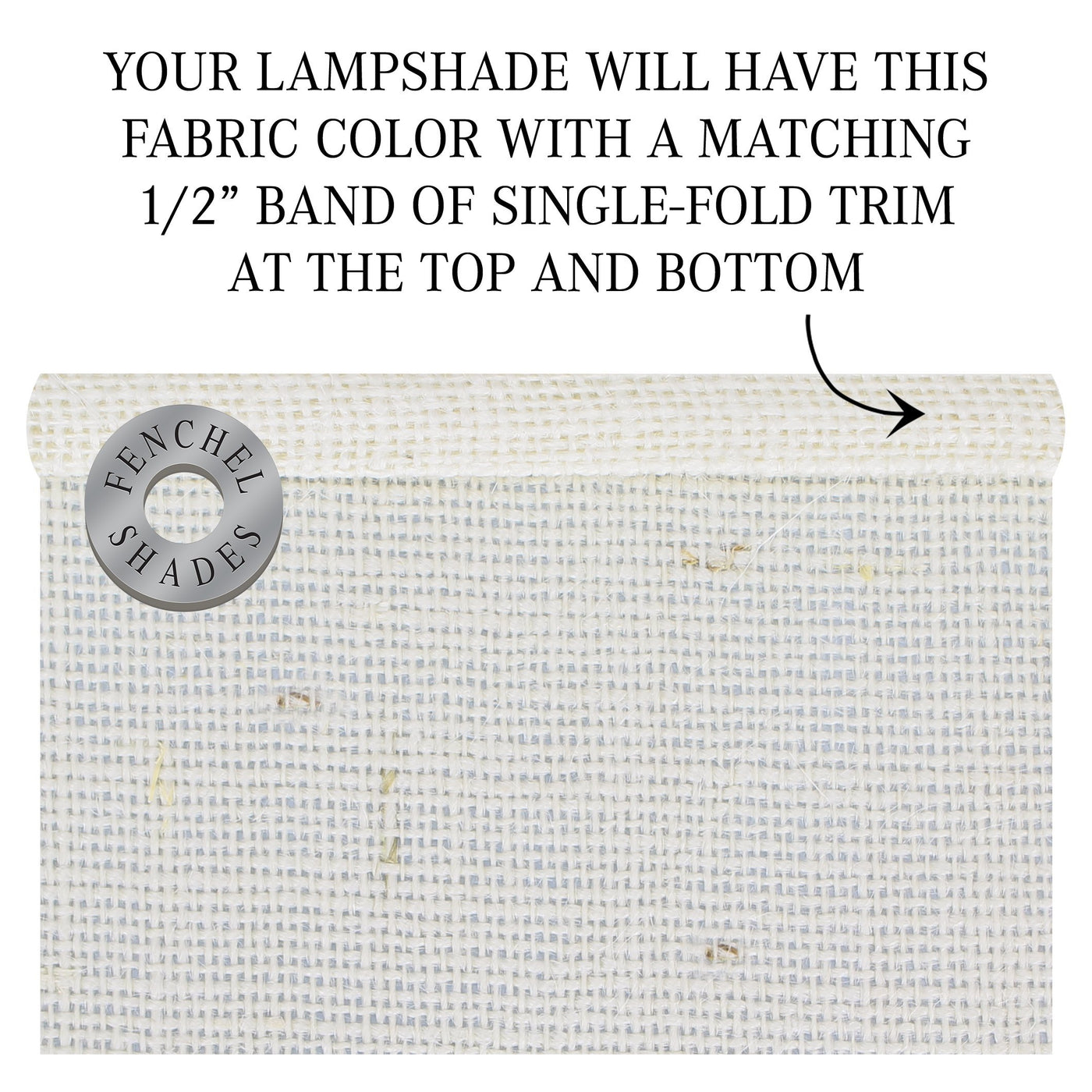 This Lamp Shade Is Not An Imported Product. It Is Made With Pride In The Usa, And Construction Does Not Begin Until You Place Your Order. By Request, You May Specify Changes To The Dimensions, Covering Or The Hardware Color. (Extra Charges May Be Necessary.) This Shade Is Equipped With A Washer Fitter. This Is The Most Common Fitter Type. It Consists Of A Small Washer With An Inner Diameter Hole Size Of Approximately 1/2''. The Washer Generally Rests On The Top Of A Metal Harp Above The Light Bulb And Is Held In Place By A Screw-On Finial. The Outside Of The Lampshade Has A Beautiful Linen Fabric. The Inside Is A White Styrene (White Plastic). The Top And Bottom Of This Item Is Adorned With A 1/2'' Band Of Single Fold Lampshade Trim. The Trim Is The Same Color As The Covering.