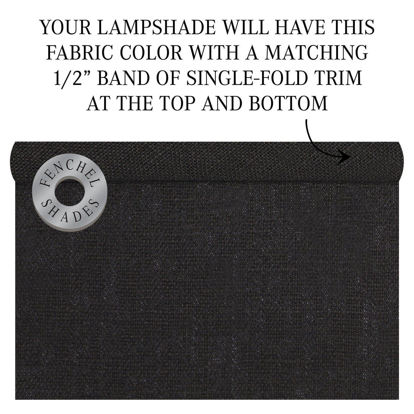 Q: What materials are used in the FenchelShades.com lampshade?A: The exterior of the lampshade is made from beautiful Designer Linen Black fabric, while the interior is lined with white styrene, providing durability and a clean look.