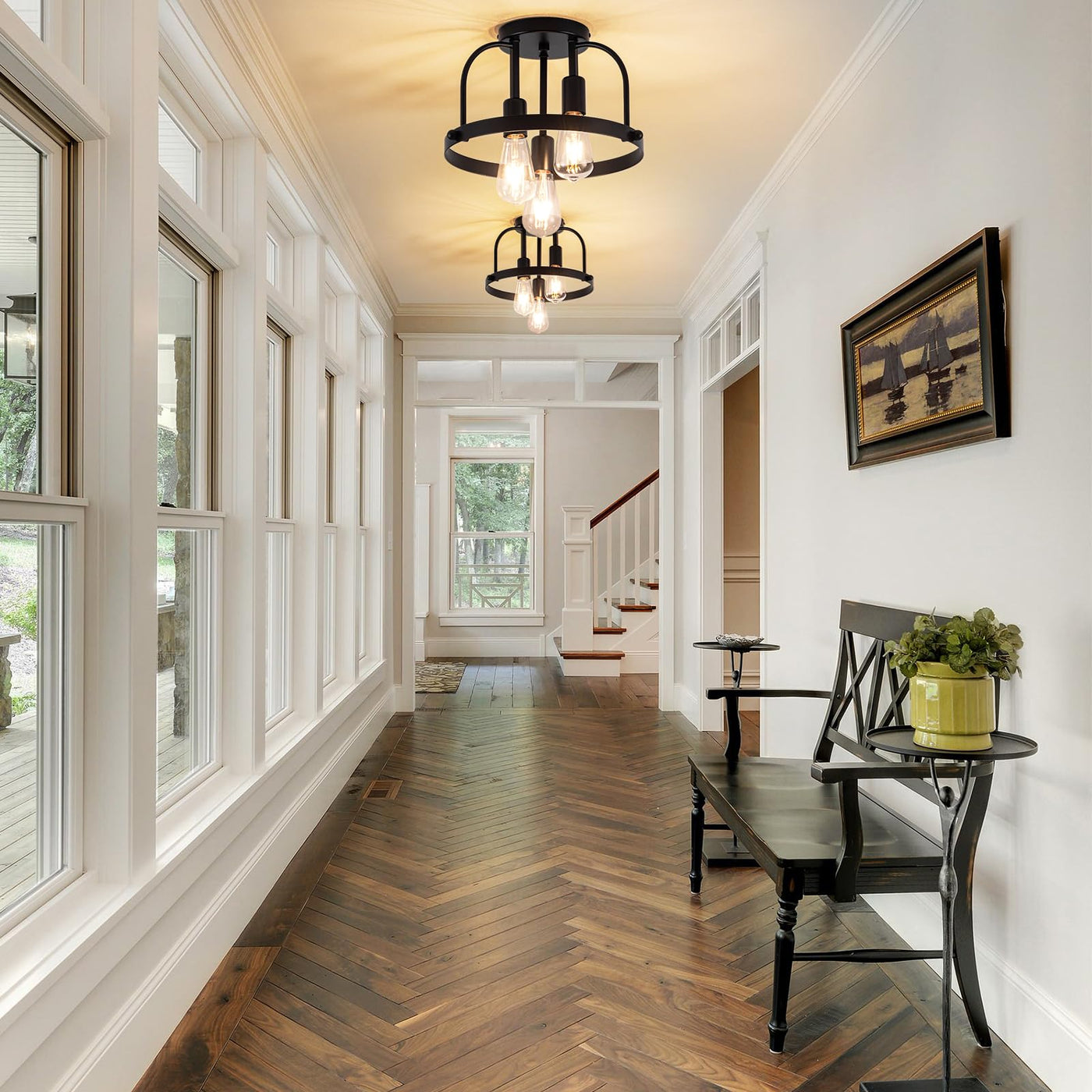 Elevate Your Space With The Fengkedu 3 Light Close To Ceiling Light Fixture A Perfect Blend Of Industrial Charm And Modern Farmhouse Style. This Black Flush Mount Ceiling Lamp Features A Sturdy Metal Frame Creating A Rustic Yet Contemporary Look. Ideal For Kitchens Bedrooms Bathrooms Foyers Or Hallways This Semi-Flush Ceiling Light Provides Ample Illumination While Adding Character To Any Room. The E26 Socket Accommodates Your Preferred Bulbs (Not Included). Its Compact 12.7Design Ensures It Fits Seamlessly In Both Small And Large Spaces. Whether You Need A Ceiling Light For Bedroom Living Room Or Hallway This Farmhouse Flush Mount Ceiling Light Delivers Both Function And Style. Crafted For Durability Its A Timeless Addition To Your Homes Lighting Fixtures. Transform Your Entryway Kitchen Or Bedroom With This Versatile And Stylish Farmhouse Ceiling Light.
