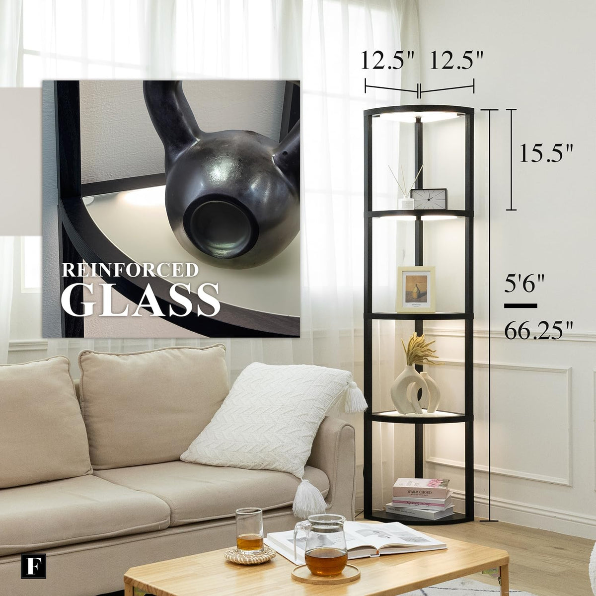 Fenlo Corner Floor Lamp With Shelves, Dimmable Led Corner Shelf With Lights, Standing Lamp For Living Room, Shelf Lamp With Full