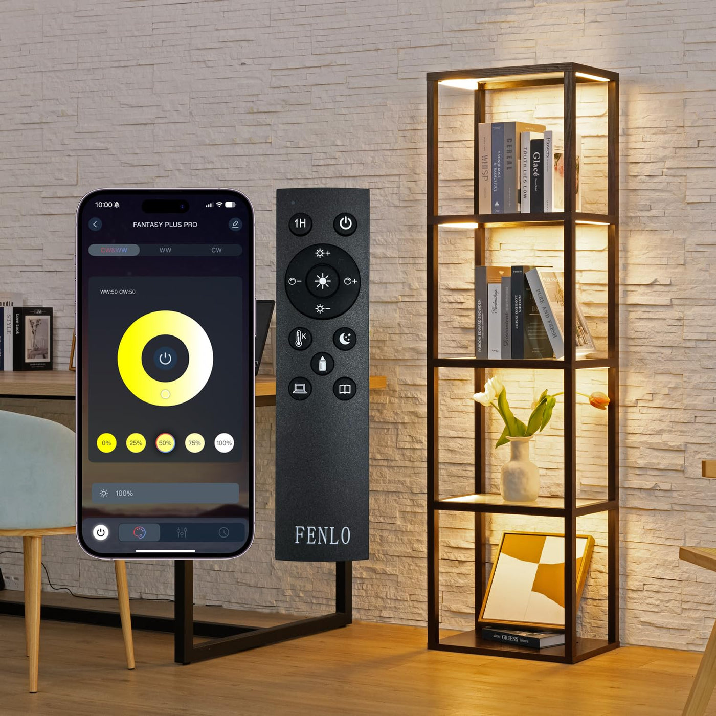 Q: How do I control the lighting on the FENLO LED Display Shelf?A: You can control the lighting using the included remote control or through a mobile app, allowing for easy adjustments to brightness and color temperature to suit your mood or ambiance.