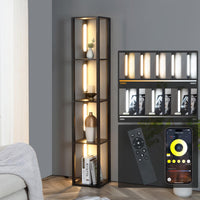Our floor lamp with shelves combines form and function, offering fully adjustable LED lighting from 2700K to 6000K to create the ideal atmosphere for any room. Whether you're aiming for a warm, inviting glow or a crisp, cool ambiance, this LED display shelf adapts seamlessly to your preferences. With easy control through a dedicated app or remote, you can adjust lighting settings, power the unit on or off, and access preset modes for a personalized display experience. This display cabinet is built to support up to 60 lbs per tier, making it perfect for showcasing cherished items like collectibles, books, or decorative pieces. Featuring advanced light-diffusing technology, the curio cabinet ensures a soft, even glow, eliminating harsh lighting and enhancing the look of your items. Assembly is quick and simple with detailed instructions and video guides, allowing you to easily incorporate this stylish and practical shelf lamp into any space.