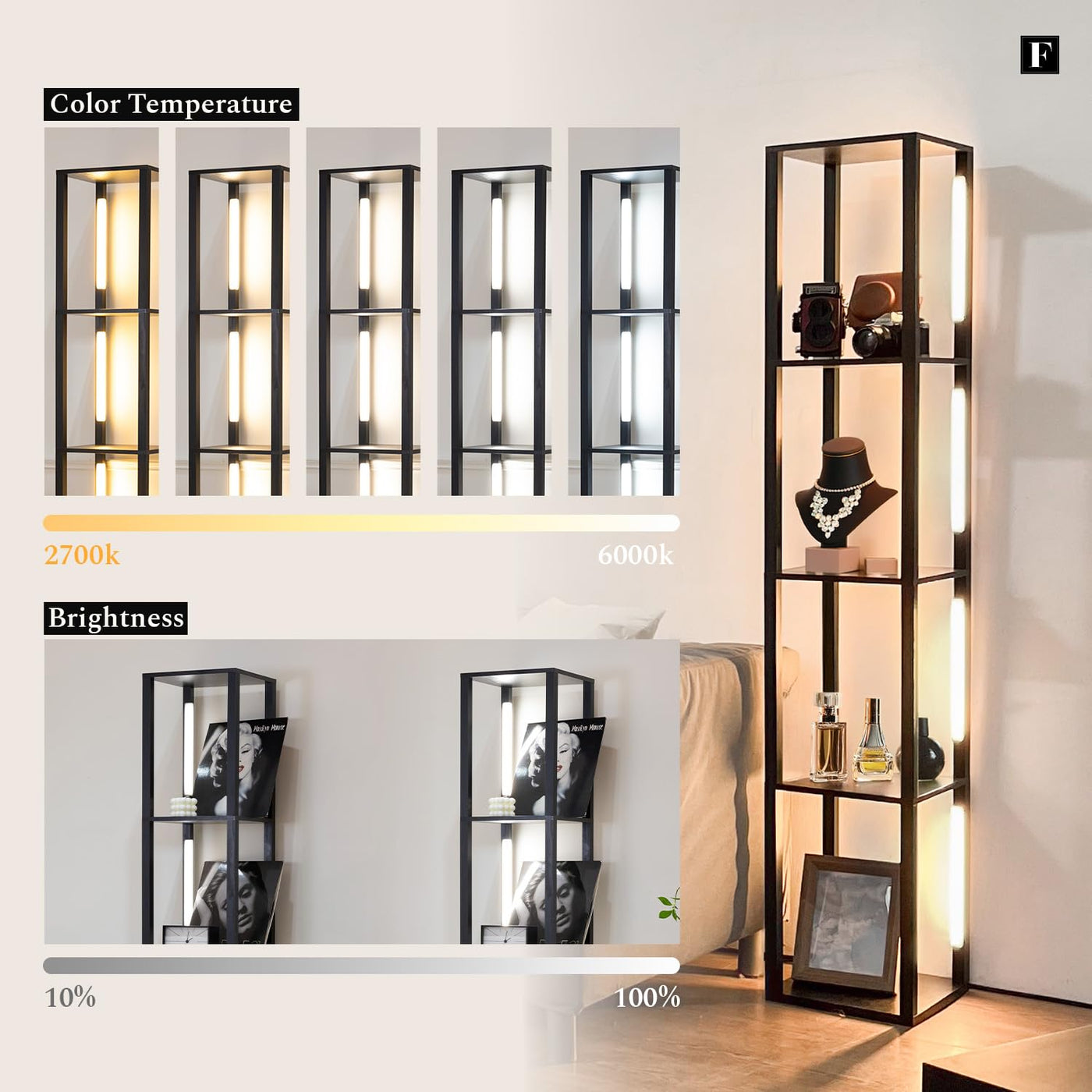 Fenlo Led Floor Lamp With Shelves - Full Color Temperature Control, Adjustable Brightness And Long Lasting Integrated Led