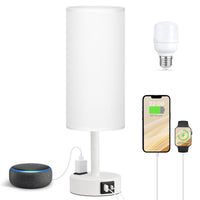 Q: What are the main features of the Fenmzee Matte White Bedside Table Lamp?A: The Fenmzee Matte White Bedside Table Lamp features touch control for easy brightness adjustment with three levels (low, medium, high), USB-A and USB-C charging ports, and a standard AC outlet for powering multiple devices simultaneously. It also includes a non-flicker E26 LED light bulb and comes with an easy-to-install fabric shade.