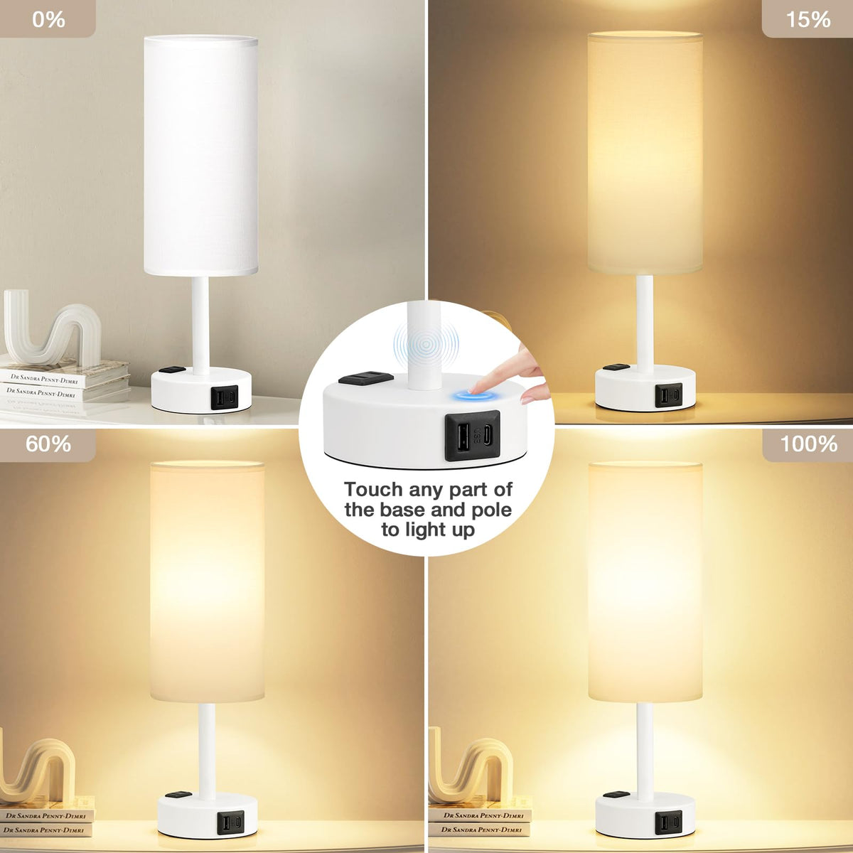Fenmzee Matte White Bedside Table Lamp For Bedroom - 3 Way Dimmable Touch Lamp Usb C Charging Ports And Ac Outlet, Small Lamp Ro