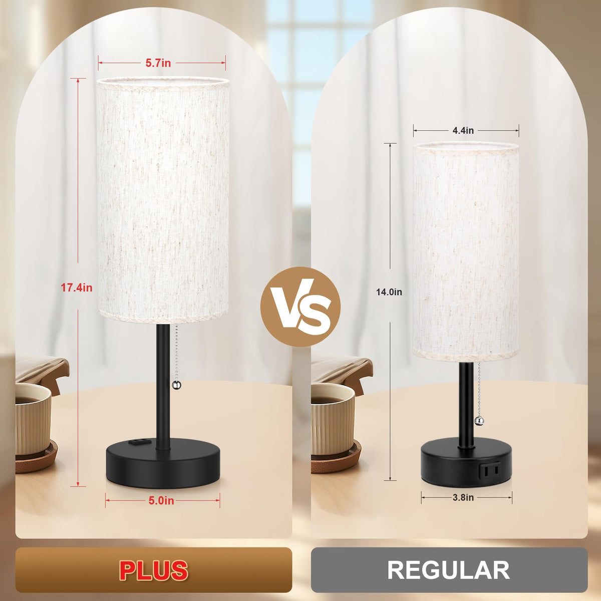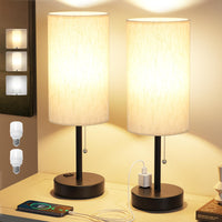 Fenmzee Plus Bedside Table Lamps Set Of 2-3 Color Temperatures Pull Chain Lamp With Ac Outlet Charging Port, Round Night Stand L