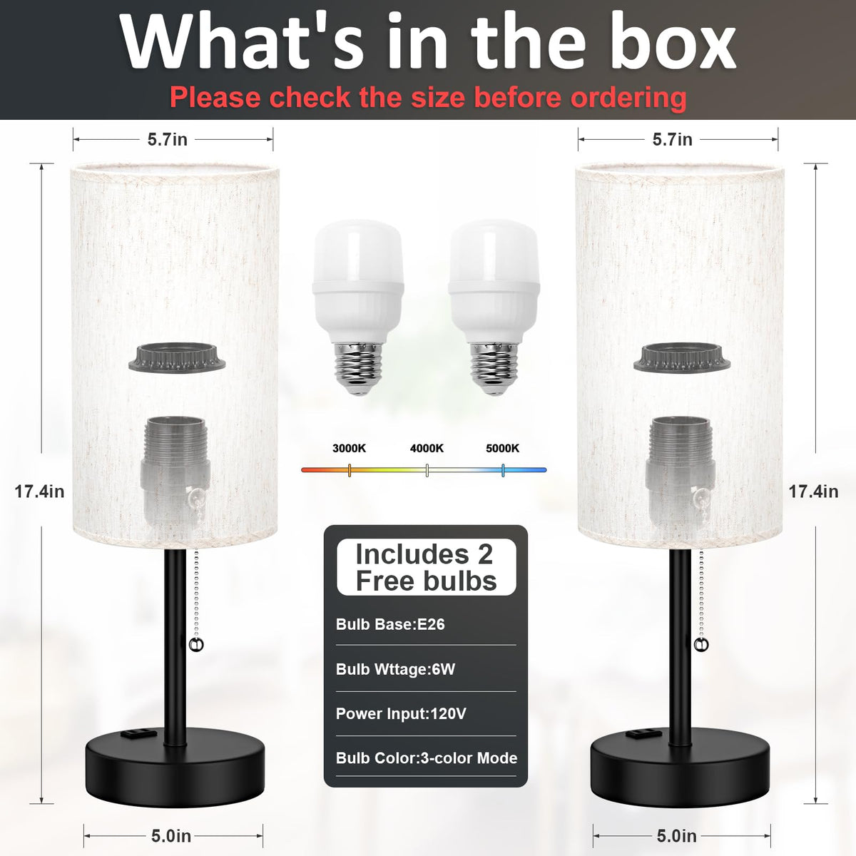 Q: What kind of bulbs does the lamp use and are they energy-efficient?A: The Fenmzee Plus Bedside Table Lamps use dual Q50 E26 LED bulbs that provide immediate illumination without warm-up time. These 6W LED bulbs are significantly more energy-efficient than traditional incandescent bulbs, offering comparable brightness and a longer lifespan.