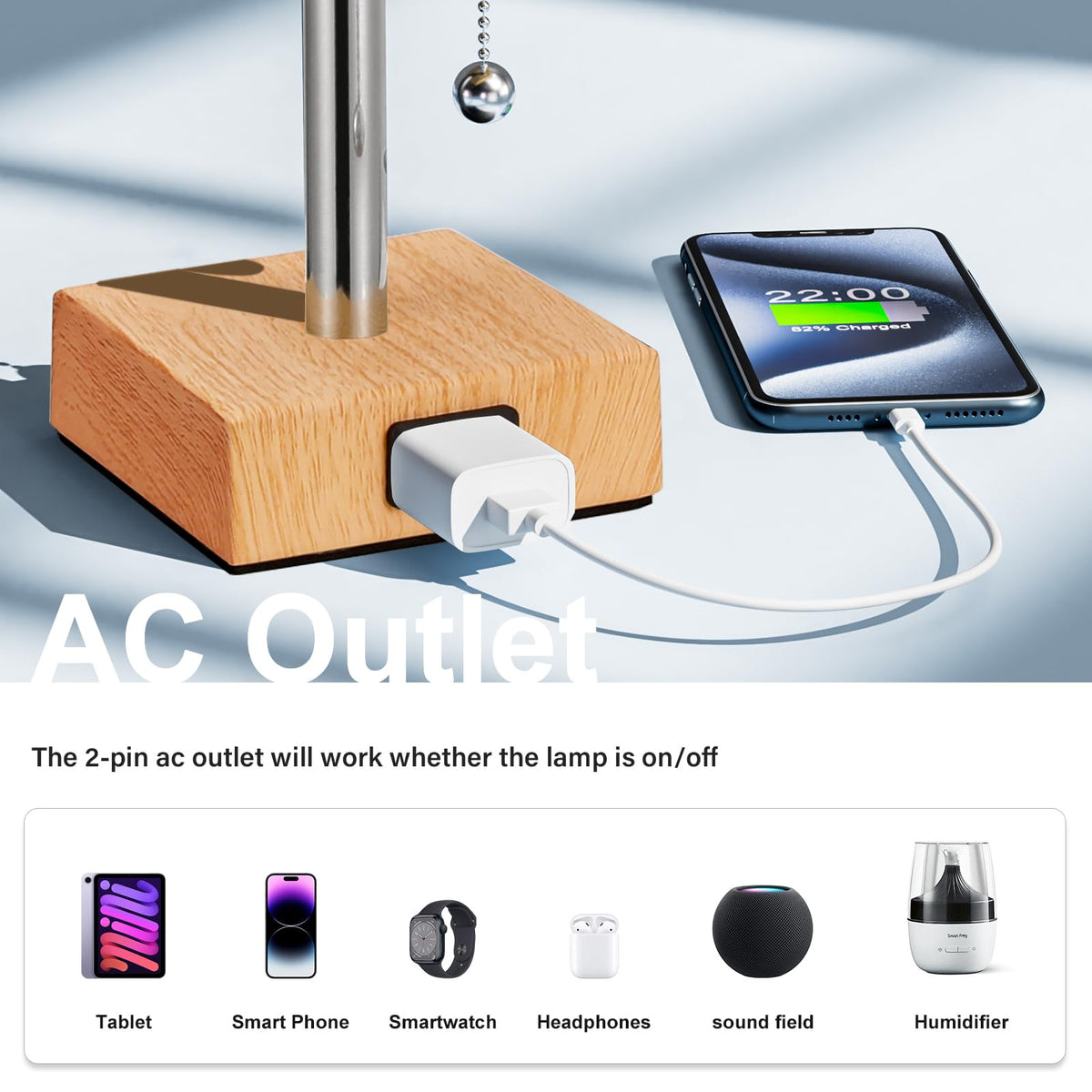 Fenmzee Table Lamp For Bedroom Set Of 2 Nightstand - 3 Color Bedside Lamps With Ac Outlets For Charging, Square Wooden Night Sta