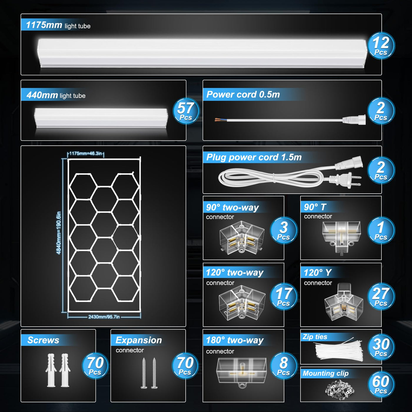Q: Is the FERUERW Hexagon Garage Light suitable for different environments?A: Absolutely! The FERUERW Hexagon Garage Light is built to withstand various environments, making it perfect for garages, shops, basements, and car detailing shops, ensuring reliable lighting in any setting.