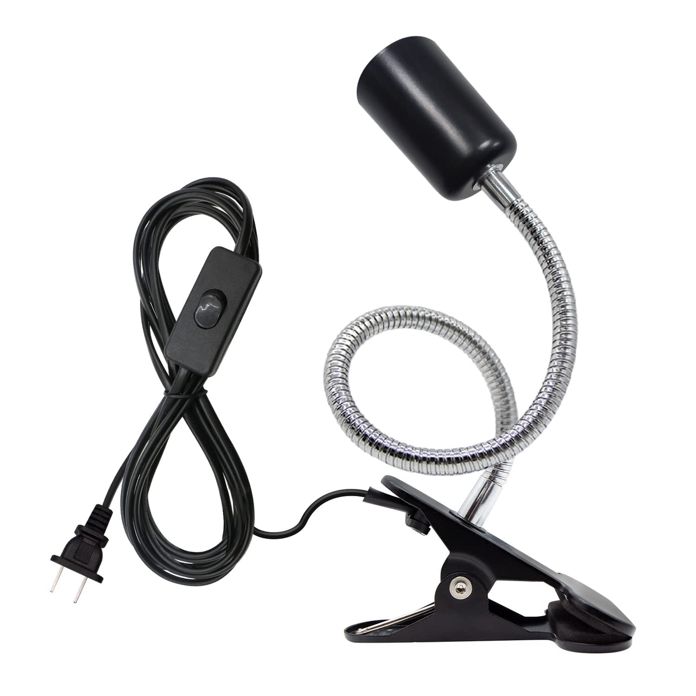 Product Description Specification: Extension cord:approx.220cm/86.6inches Flexible neck:about 35cm/13.78'' long, 9mm diameter Maximum power:60W Material:metal clip,flame retardant PC Power plug:American plug Lamp holder interface:E26/E27 Voltage:110V-250V Product color:white straight open clip light Packing quantity:1PC Intimate Design: ?Iron base,thick spring,better and firmer grip.In addition,a soft rubber cushioning foam is installed in the clip opening to reduce movement noise while preventing slippage. ?The switch button is 50 cm away from the handle base,which is more suitable for use. ?This clip light works with all types of bulbs,tungsten,LED,and more. It is a good helper for office lighting and reading.